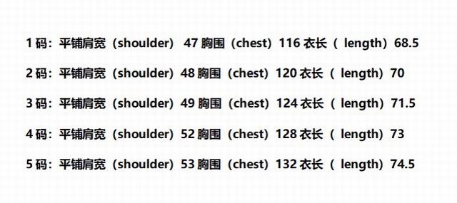 Sizes: 1, 2, 3, 4, 5