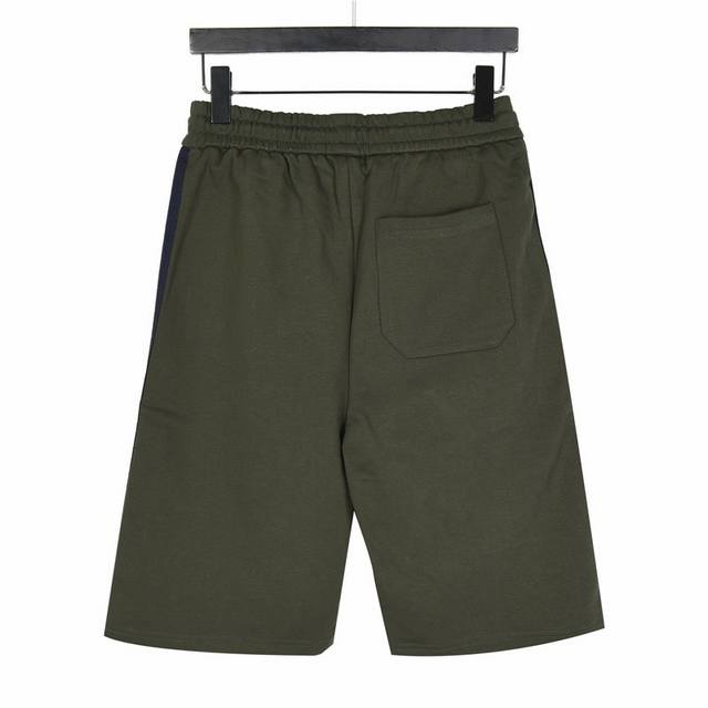 The waist is equipped with elastic drawstrings, and the drawstring details are equipped with 3 colors of red, white and blue on the head, which correspond to the color stripes of the shorts. The front of the