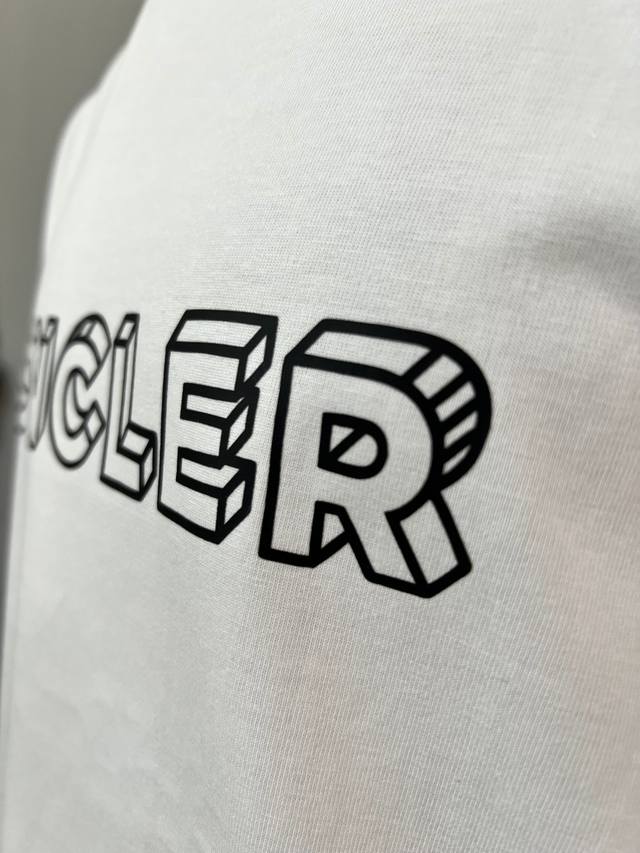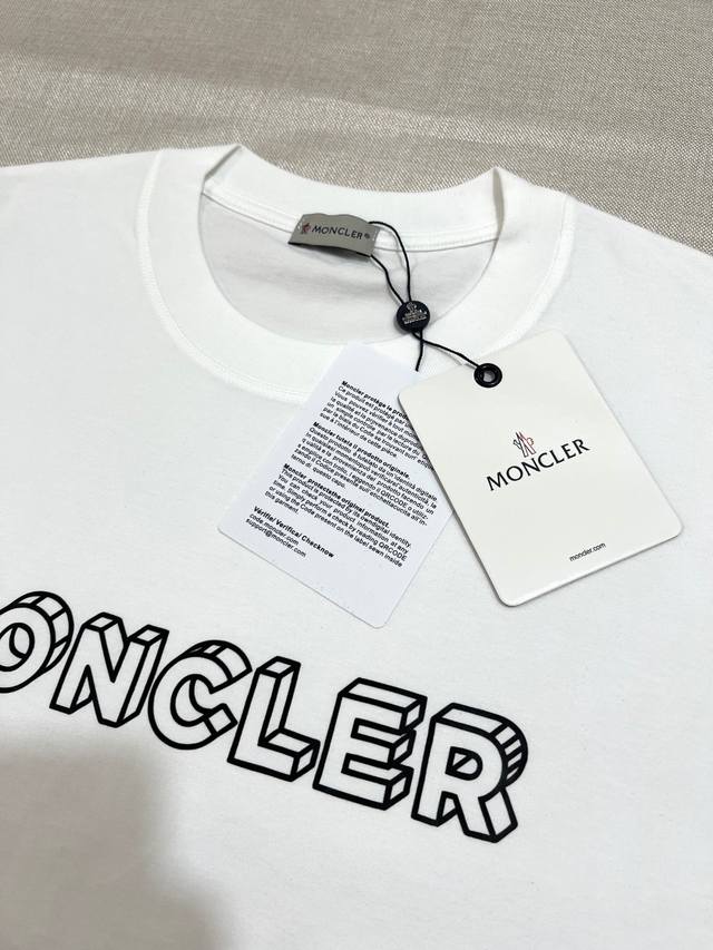 Moncler new arrival: 3D letter print short-sleeved shirt with official and imported ribbed fabric, matching the official and imported designs. Details are identical to the official version, with strict control over label size and standard sizing. Stitching details are also identical to the official version. Made of 240g double yarn 100% pure cotton fabric with imported machine-woven ribbed yarn. The neckline is reinforced to prevent deformation. High-temperature washing process ensures softness, breathability, and shrinkage resistance. NCF care label identification. Attention to detail and a good fit. European sizing, loose and comfortable. Colors: Black, White. Sizes: Xs-L,