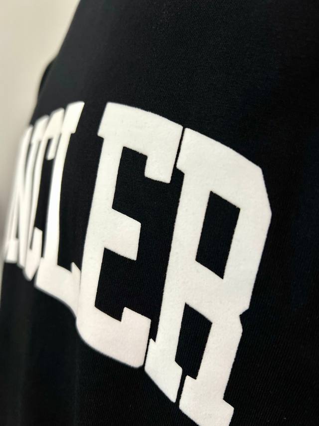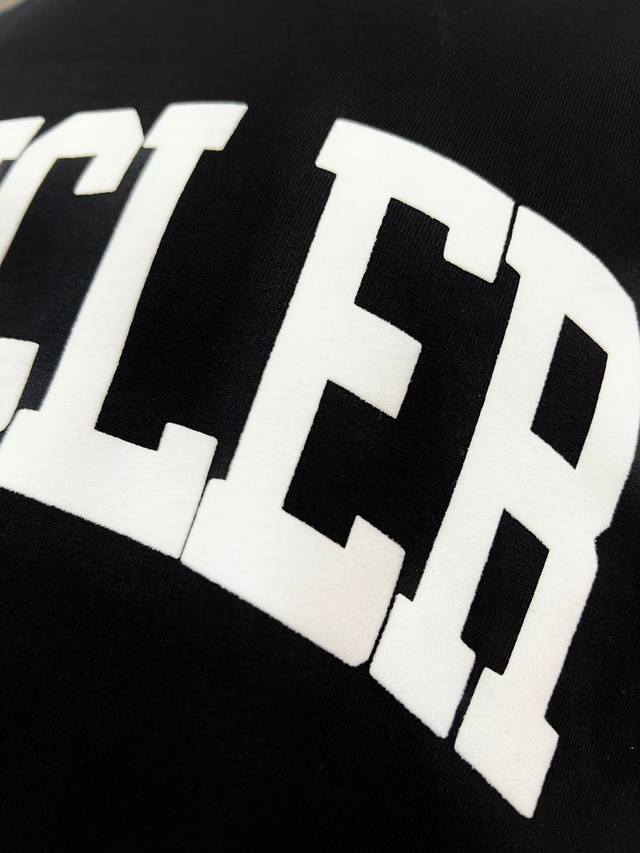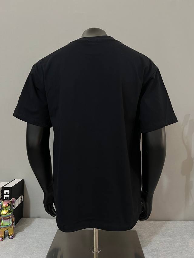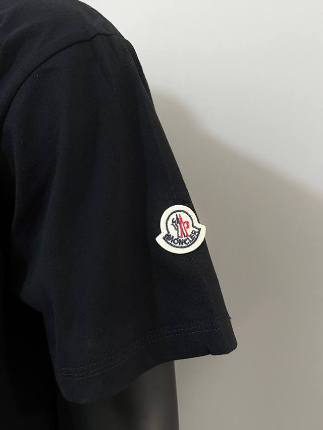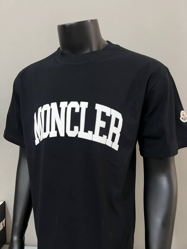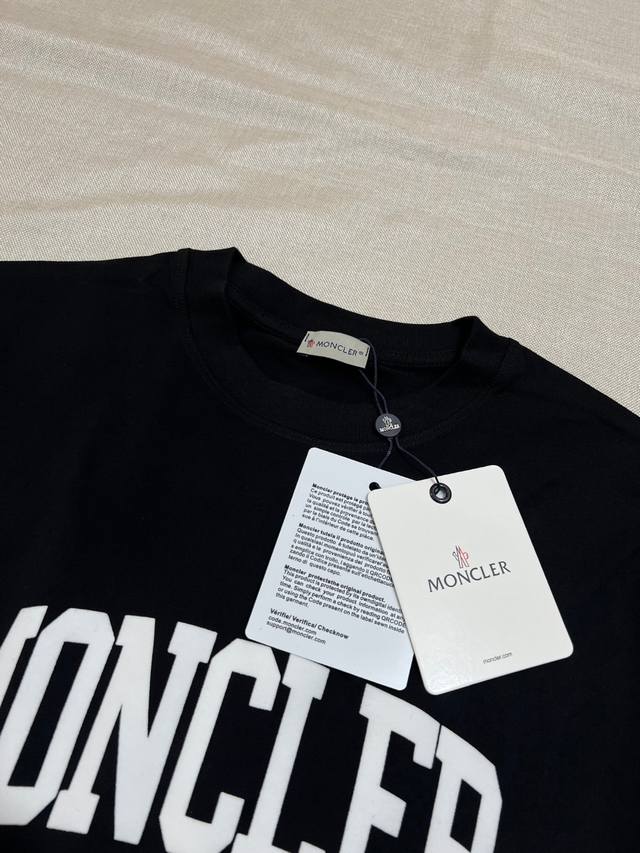 Moncler new arrival, official and retail synchronized; 2025Ss flocked large letter print sleeve patch style, made of 240g double yarn 100% pure cotton fabric, imported machine-woven ribbed yarn, neckline with ribbed seams to prevent deformation, high-temperature washing process before leaving the factory, soft and breathable fabric, no shrinkage, NCF care label identification, meticulous details, looks good on, European sizing, loose and comfortable, colors: black, white, sizes Xs-L