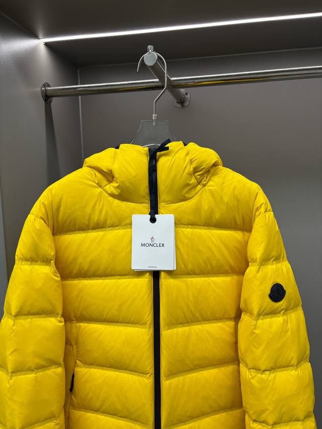Moncler New Color Block Print Logo Down Jacket. Classic black and white, unisex, simple yet sophisticated. Custom-made accessories, filled with top-quality imported white duck down, lightweight and warm, say goodbye to bulkiness, easily balancing style and warmth. The hooded design is windproof and stylish, adding a touch of elegance whether layered or worn alone. Suitable for various styles, allowing you to stay cool and fashionable even in the cold season. Sizes: M-XL. Colors: Black, White, Yellow.
