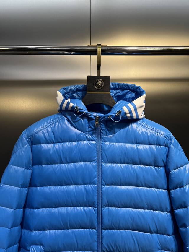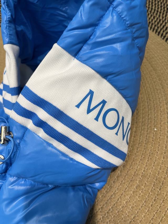 Moncler New Striped Logo Quilted Hooded Down Jacket, Simple and Stylish, Flattering on All Body Types, Lightweight and Elegant, Perfect for Outings. Colors: Black, White, Sky Blue. Sizes: 12345.