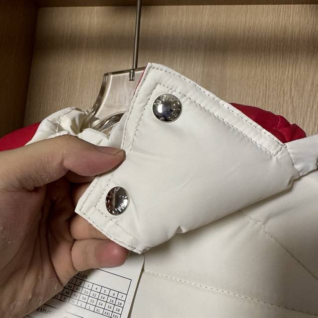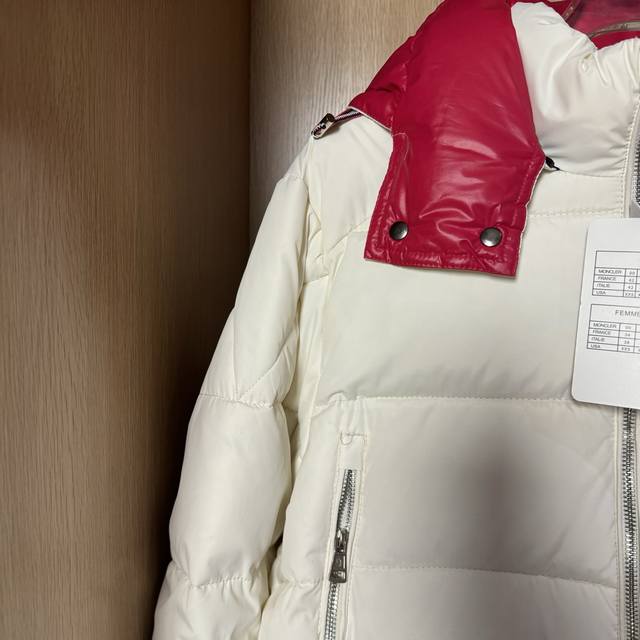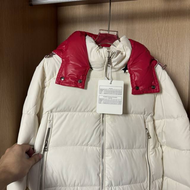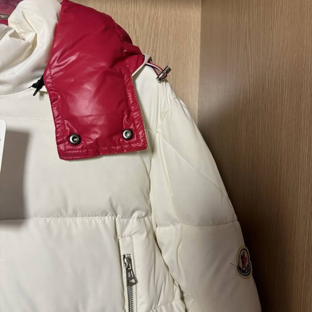 Moncler off-white hoodie with red accents and a black design. Both feature a detachable hood. Red details on the zipper and pockets add a touch of design flair, reflecting the brand's focus on both functionality and style. Suitable for cold weather, it combines warmth and trendiness. Ddd uses the original NFC sensor anti-counterfeiting chip, exclusively in the market, avoiding any misconceptions. The perfect down filling technology provides excellent fluffiness and texture. Lightweight and warm, maximizing its cold-weather protection. Original factory-made electroplated hardware, all custom-made, not replicas found in the market. DDD