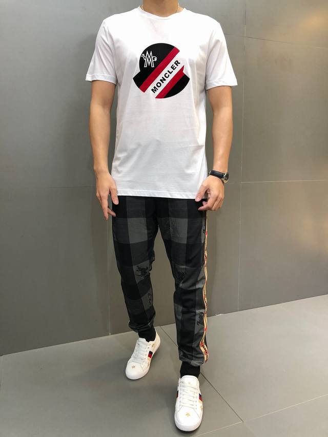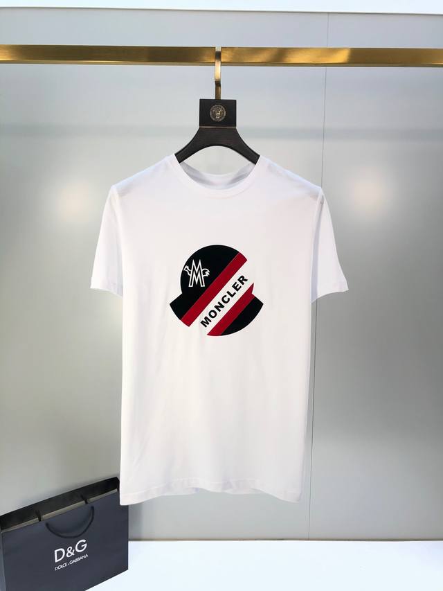 Moncler. Suitable for those weighing over 200 jin (approximately 100 kg). This year's latest hot-selling short-sleeved T-shirt. Same style as department stores, drip-molded material for the design. The overall design is simple and elegant yet stylish, featuring a classic luxury brand logo. The fabric is imported mercerized cotton. Comfortable and smooth to the touch, breathable and cool to wear, definitely at the forefront of fashion! Sizes: M-XxxxL. M fits 175cm.