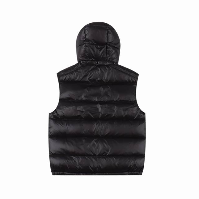 Moncler's classic stand-collar hooded down vest is available at the Shanghai IFC