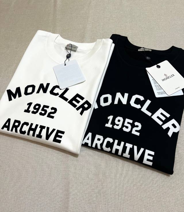 Moncler's new arrival: 2025Fw Autumn/Winter long-sleeved T-shirt, a matching official and imported design, featuring a flocked print 1952 commemorative sweatshirt/short-sleeved sweatshirt. Details are identical to the official design. Made from 280g double-yarn 100% pure cotton fabric with imported machine-woven ribbed yarn. The neckline is reinforced to prevent deformation. The fabric is soft, breathable, and shrink-resistant. It features an NCF care label. Attention to detail and a flattering fit. European sizing, loose and comfortable. A wardrobe essential for autumn/winter layering and outerwear. Colors: Black, White. Sizes: XS-L. Size L can fit up to 200 lbs.