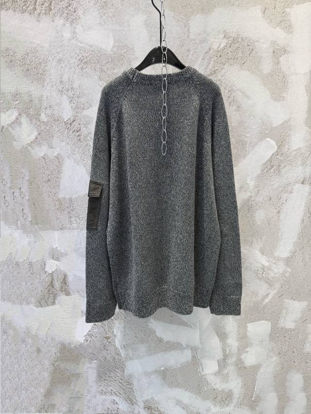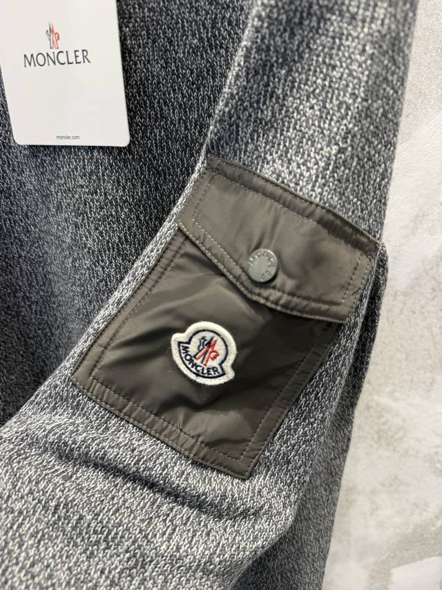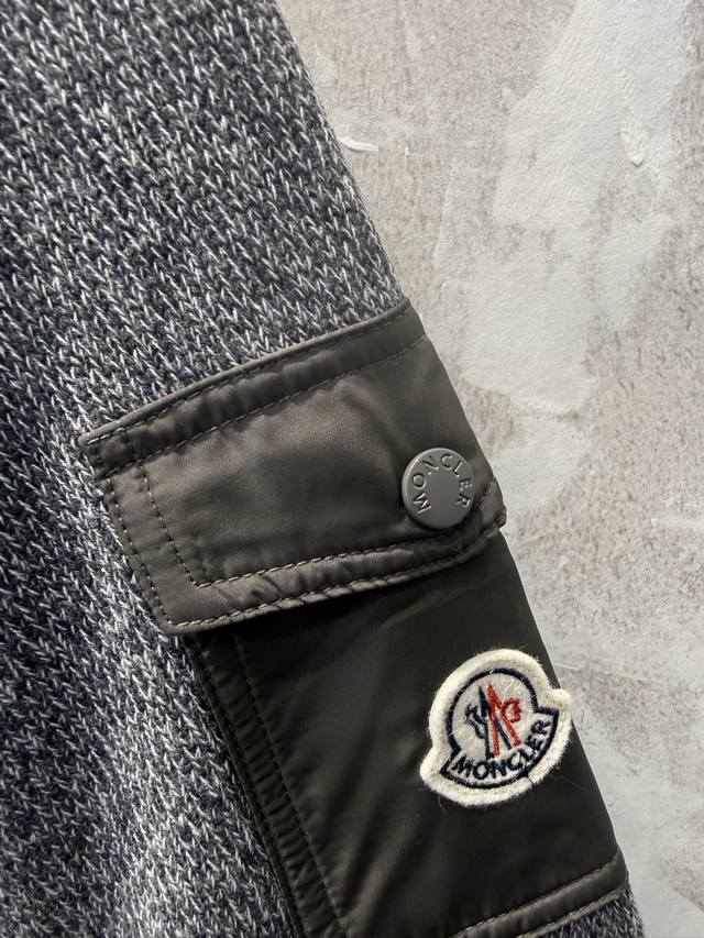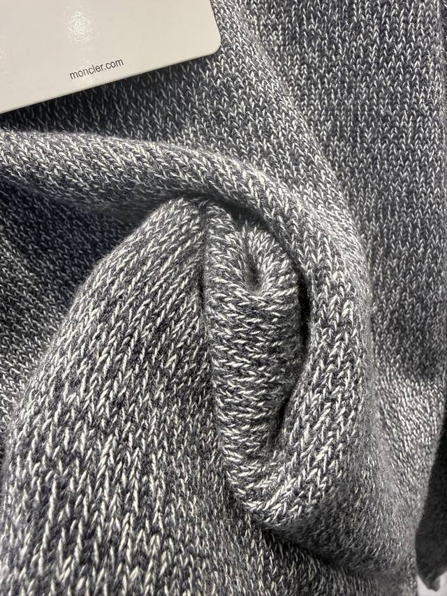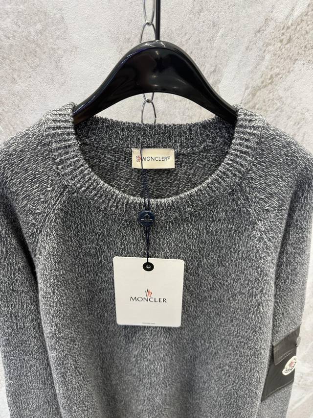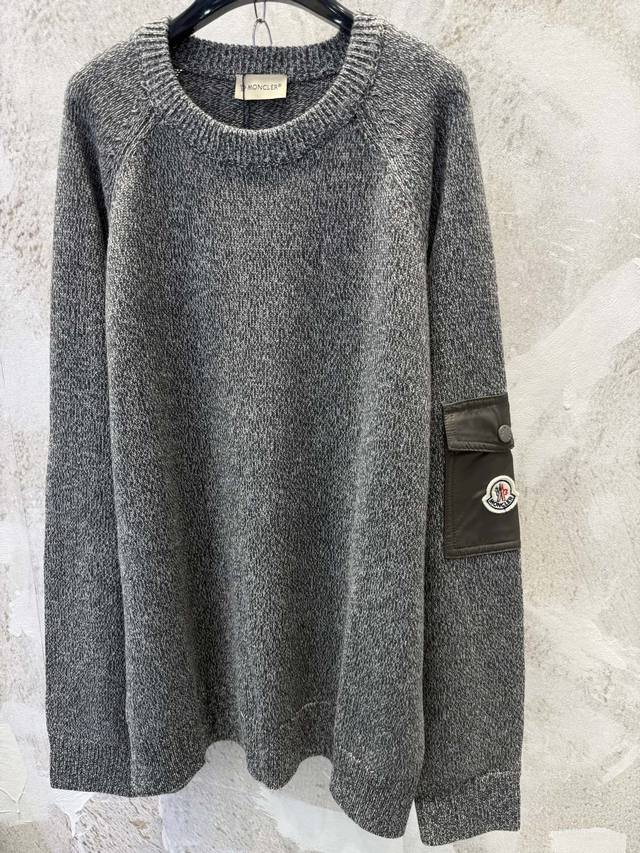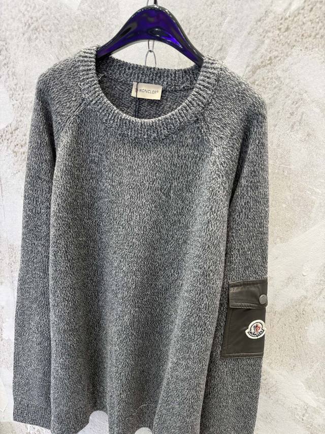 Moner 25Fw High-Quality Dongguan-Made Original Single-Item Crew Neck Sweater with Sleeve Pockets. Original version purchased for 6,950 RMB and developed from it. The fabric is a 30% wool double-ply blend, with the wool body ensuring warmth and comfort, while the addition of small amounts of nylon and spandex significantly improves elasticity and durability. The ribbed trim is made of 100% wool, further enhancing the overall texture. Knitted on a high-needle-count, fine-gauge knitting machine, combined with the orderly direction of the internal yarns, the floats are cleverly woven and concealed, with almost no excess thread or mess. The nylon pockets on the sleeves are adorned with the brand logo, exuding understated luxury. Size: SML-XL