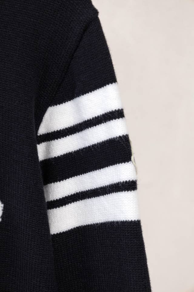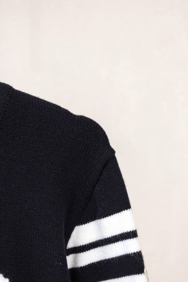 Style No. X347 Black and Gray Moncler Logo Embroidered Knit Crew Neck Sweater. Complete with official store packaging and labels, distinguishing it from market counterfeit goods. Suitable for couples; colorfast, pill-resistant, shrink-resistant, comfortable and breathable fabric. Made with custom-dyed, high-weight original wool blend yarn, high-quality pure cotton 14S fine knit fabric, woven on a German imported jacquard machine. Environmentally friendly, color-fixed, and custom-dyed fabric requires fine yarn and extremely high-quality raw cotton. Oversized fit, fits up to 200cm. Original matching accessories 1:1. High-end craftsmanship of the main label. Colors: Gray, Black. Sizes: S-XL.