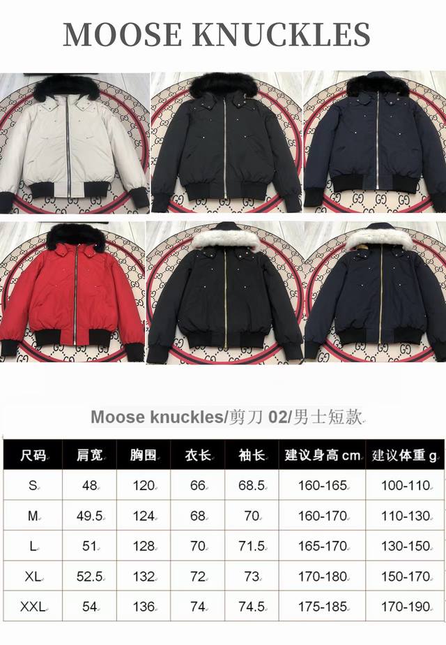 Style No.: Y116 Ddd Colors: Black, Navy Blue, Beige Ddd Moose Knuckles Scissors 02 Men's Short Ddd Fur Collar: Black or White (Optional) Ddd The Moose Knuckles family has been producing down jackets since 1921 and established the brand in Toronto, Canada in 2007! Positioned as a high-end outdoor brand, its main product is down jackets designed for extreme cold weather. It's considered a national treasure brand in Canada, with down jackets priced between RMB 6550-15000! The product design is youthful, with a rounded metal scissors logo that's highly distinctive and favored by top international celebrities! Following the trend of Moncler and Canada Goose, Moose Knuckles is poised to become a trendsetter this year. Ddd The filling uses genuine 90% goose down, providing excellent warmth! Ddd The fabric uses nano-waterproof material to resist cold winds and snow. Ddd The zipper uses top-grade Japanese YKK zipper with an axe design, full of creativity! The Ddd fur collar is made of Arctic silver fox fur, making it unique and with an excellent feel! The Ddd care label features a 3D holographic effect, far surpassing other products on the market. Ddd Sizes: S-2XL