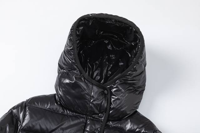 Top Version Moncler Hooded Short Down Jacket for Women. This down jacket combines femininity with practicality, reinterpreting 70s aesthetics for the modern woman. Made from glossy nylon fabric, the Barante down jacket is inspired by the 70s. The fitted waist creates an A-line silhouette, highlighting a feminine style. An adjustable hood and signature logo patch add finishing touches. Details: Made from Lon Laqu