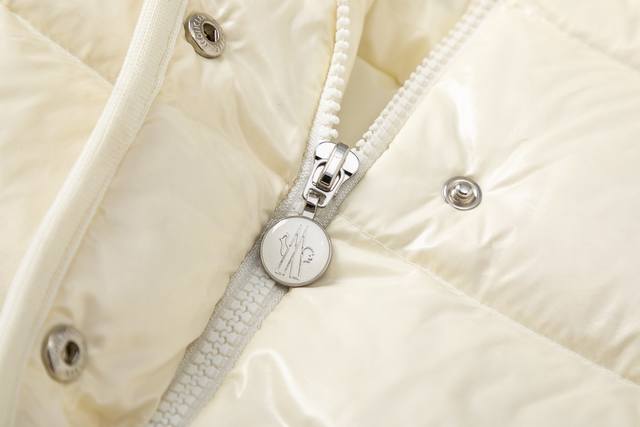 Top Version Moncler Hooded Short Down Jacket for Women. This down jacket combines femininity with practicality, reinterpreting 70s aesthetics for the modern woman. Made from glossy nylon fabric, the Barante down jacket is inspired by the 70s. The fitted waist creates an A-line silhouette, highlighting a feminine style. An adjustable hood and signature logo patch add finishing touches. Details: Made from Lon Laqu