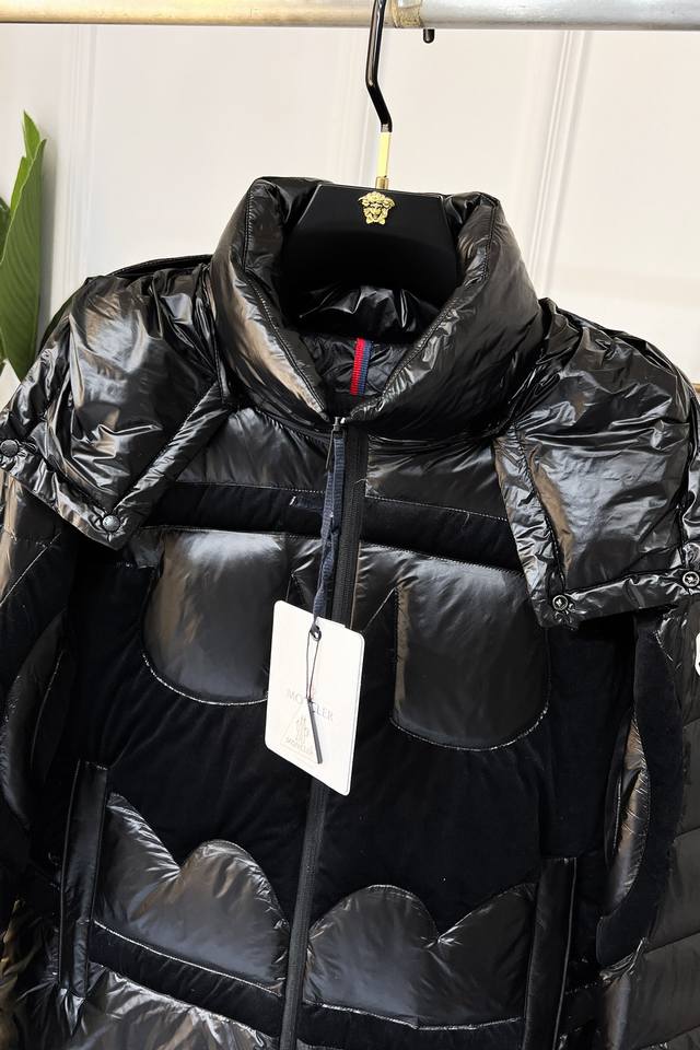Top-tier market version! Pay attention to the details compared to this Moncler Batman logo down jacket. Custom-made with a premium charcoal black coating. Made with custom-made Korean-style flowing velvet knit fabric. Utilizing 400D calendered lining and national standard goose down. Welcome to inspect. High down content, exceptional warmth, lightweight and fluffy. A meticulously crafted collaboration series. Adorned with the Batman logo on the front, inspired by this renowned superhero, maximizing recognizability. The iconic Moncler embroidered logo is featured on the sleeves, showcasing the brand's style. A tribute to classic design and an interpretation of modern fashion, it locks in body heat, ensuring comfort and warmth, becoming the most intimate companion in winter. Sizes: 1 2 3 4 5
