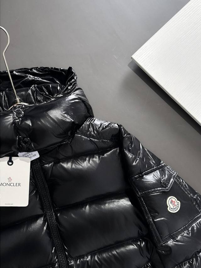 Top-tier Moncler parka with a glossy Mayan classic celebrity-style short down jacket. Features a built-in NFC sensor on the sleeve patch to distinguish it from other versions. Description: This short parka is made of Longue Saion fabric and is packed with functional details to ensure warmth and comfort. It features a detachable hood, zippered pockets, adjustable cuffs, and a snap-button zipper flap placket. The sleeves are adorned with a logo, adding a unique touch to the overall look while significantly enhancing protection. Material and Craftsmanship Analysis: 1. Original NFC sensor anti-counterfeiting chip. 2. 90% duck down, the fullest fill on the market, no exaggeration of goose down, etc. 3. Outer fabric: 100% nylon; Lining: 100% nylon, the highest quality on the market, everything is customized to the original.