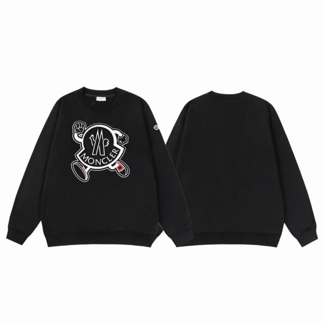 Top-tier OEM quality, style number: 8012. Moncler official website same style printed pattern fleece crew neck sweatshirt. 400G heavyweight fleece version, 100% pure cotton, exclusive shipment, custom-dyed sulfur black dust-free treated fabric. Fabric: 400G 100% pure cotton Sirospun fleece, with matching 420G pure cotton ribbed knit. The logo is exquisitely upgraded, inspired by 1980s retro style. Original fabric, official same style crew neck sweatshirt. Colors: Black, White. Sizes: Xs, S, M, L. Purchased from the original and molded, with all custom accessories. Details determine success. Accessories: 1:1 original accessories, complete with three labels, Os drop shoulder fit, unisex, official website quality. Unisex.