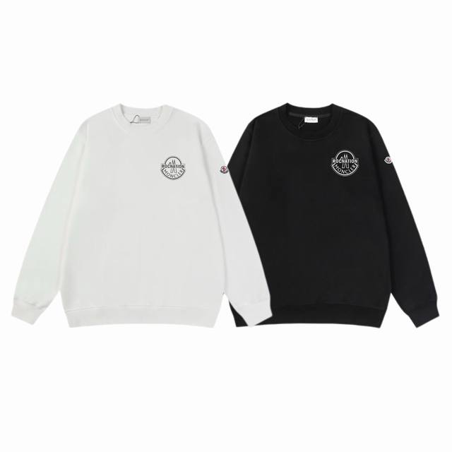 Top-tier OEM quality, style number: M8034. Moncler official website same style printed pattern terry cloth crew neck sweatshirt. 400G heavyweight terry cloth version, 100% pure cotton, exclusive shipment, custom-dyed sulfur black dust-free treated fabric. Fabric: 400G 100% pure cotton Sirospun terry cloth, matched with 420G pure cotton ribbed fabric. The logo is exquisitely upgraded, inspired by 80s retro style. Original fabric, official same style crew neck sweatshirt. Colors: Black, White. Sizes: Xs, S, M, L. Purchased from the original and molded, with all custom accessories. Details determine success. Accessories: Original accessories, 1:1, all three labels complete. Os drop shoulder fit, unisex, official website quality. Unisex.