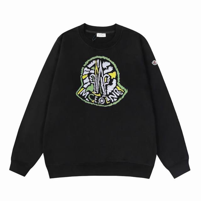 Top-tier OEM quality, style number: M8043. Moncler official website same style printed pattern terry cloth crew neck sweatshirt. 400G heavyweight terry cloth version, 100% pure cotton, exclusive shipment, custom-dyed sulfur black dust-free treated fabric. Fabric: 400G 100% pure cotton Sirospun terry cloth, matched with 420G pure cotton ribbed fabric. The logo is exquisitely upgraded, inspired by 80s retro style. Original fabric, official same style crew neck sweatshirt. Colors: Black, White. Sizes: Xs, S, M, L. Purchased from the original and molded, with all custom accessories. Details determine success. Accessories: Original accessories, 1:1, complete with three labels. Os drop shoulder fit, unisex, official website quality. Unisex.