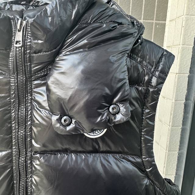 Top-tier real-life photos distinguishing genuine Moncler down vest from lower-quality ones. Style number: Tt120. The long-awaited Maya down vest, a Moncler archive masterpiece, is crafted from signature shiny lacquered nylon and features high-performance details, providing warmth and protection. This classic Moncler piece includes a detachable hood for enhanced protection. This down vest features an NFC chip for anti-counterfeiting, is made of coated nylon, is filled with down, has a detachable hood, a zipper closure, zippered outer pockets, and an elastic drawstring hem. The detachable hood allows for versatile styling. It uses a custom-supplied Toray glossy outer material and a 15D nylon lining of the highest standard, with a smooth and high-quality feel. The entire down jacket has four layers of fabric, with two inner linings made of the finest 400D lining and wool. Absolutely no down leakage!