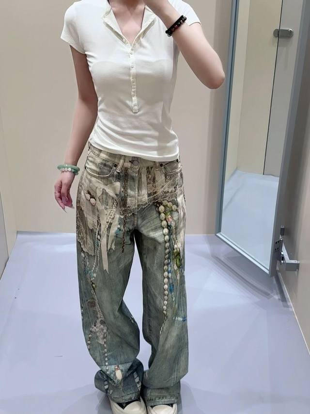 on the market Acne Studi*S 25Fw Early Autumn New Lace Glass Bead 3D Stereo Printing 1981 Denim Wide Leg Pants | Exclusive Yb Development! High Edition Production! How to describe this popular pair of jeans? It is simply impossible to refuse to wear them. The design is really full, and the most important thing is the style. It really modifies the leg shape and proportion. This new style can be perfectly controlled by both boys and girls! Available now Xs SML
