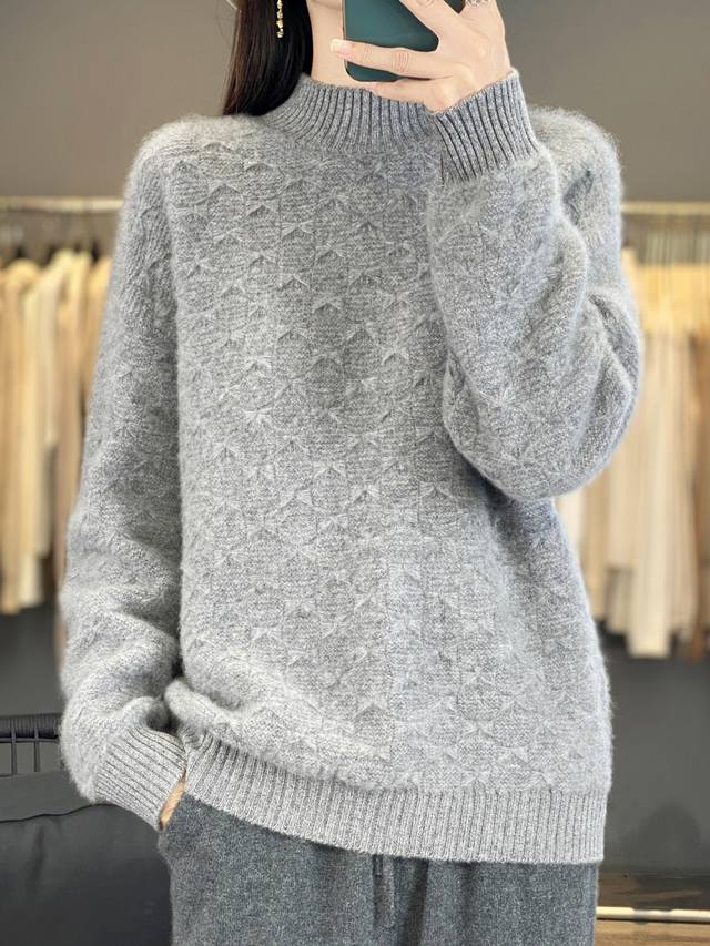 100% wool seven-needle thickened bow pattern sweater