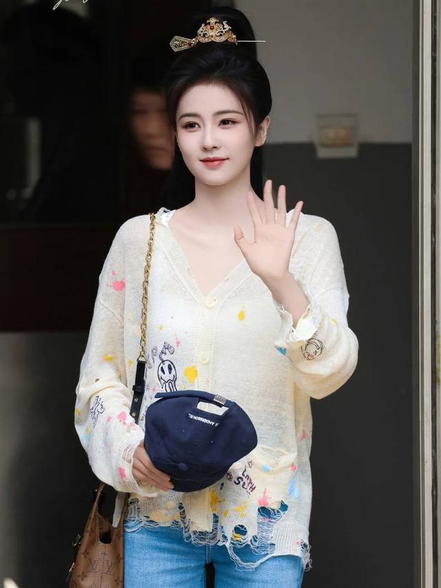 13 Graffiti Print Ripped Linen Knit Cardigan! Linen Sml Ddd