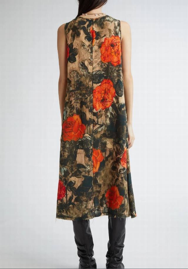 13 Printed Loose-fitting Dress! Cupro Silk Sml Ddd