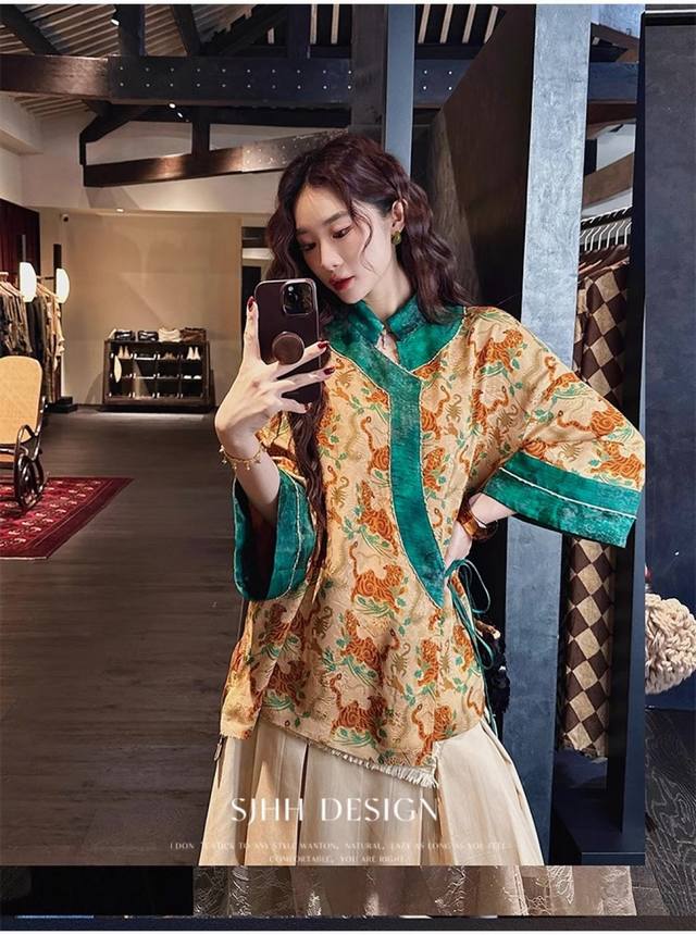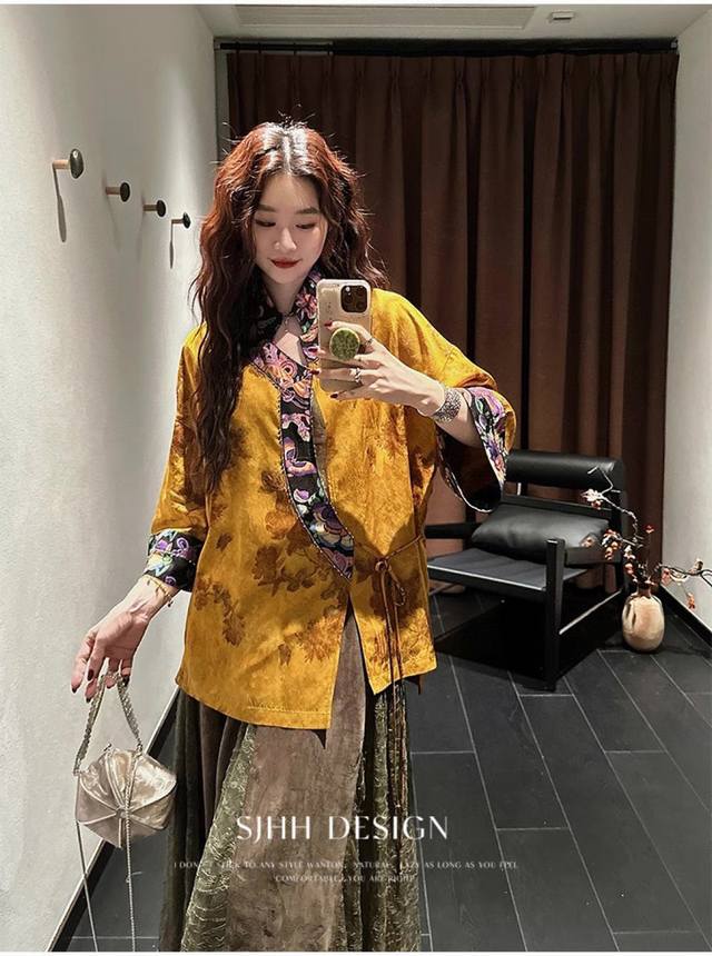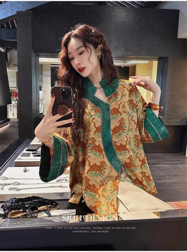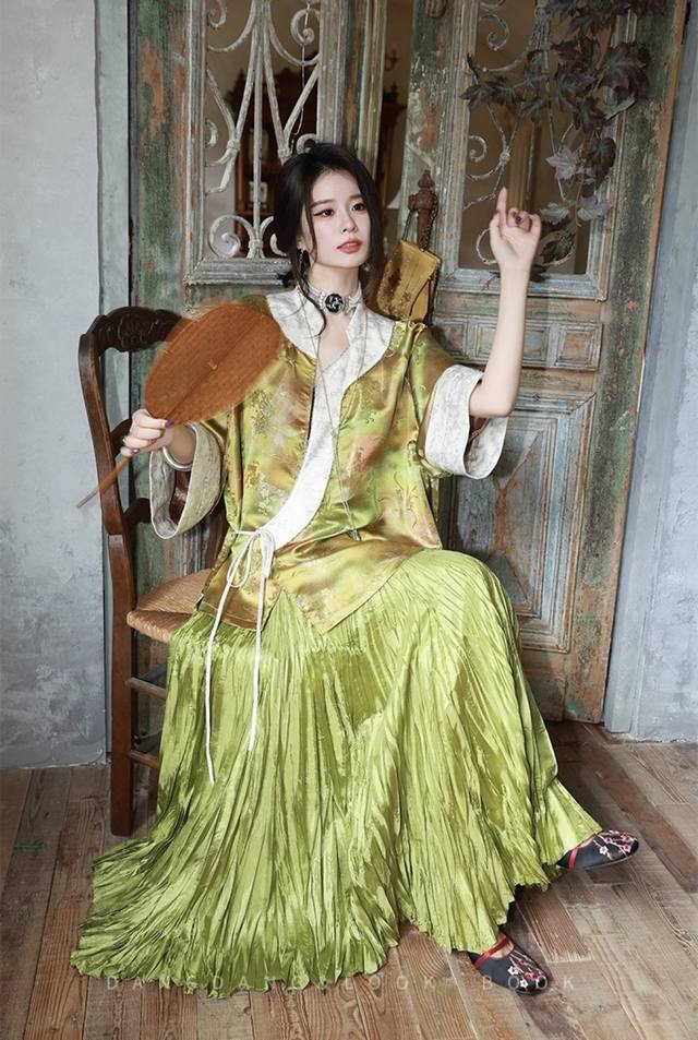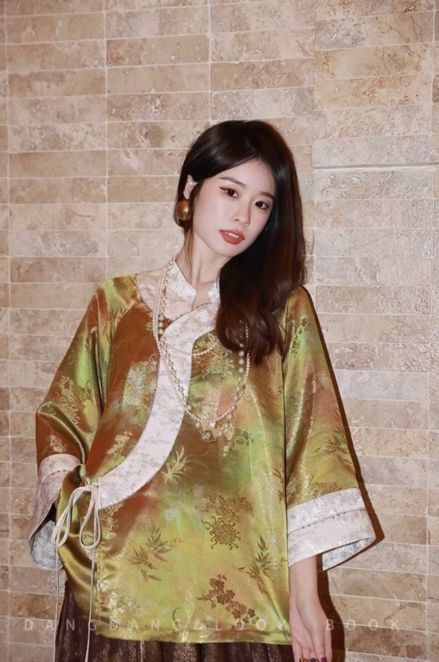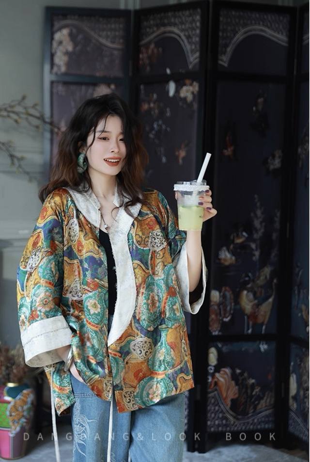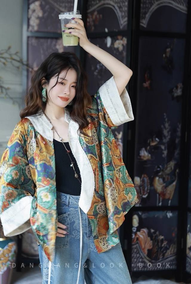 2000 pieces in stock. This is the same new Chinese-style silk cool coat as Yang Mi's. It's heavily stitched with gold beads. The contrasting stitching on the neckline and cuffs adds a sense of visual depth. The slanted lapel and lace-up design allows for free adjustment of the waistline to show different body shapes and adds a touch of casualness and agility. Smlxl