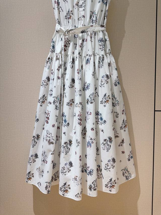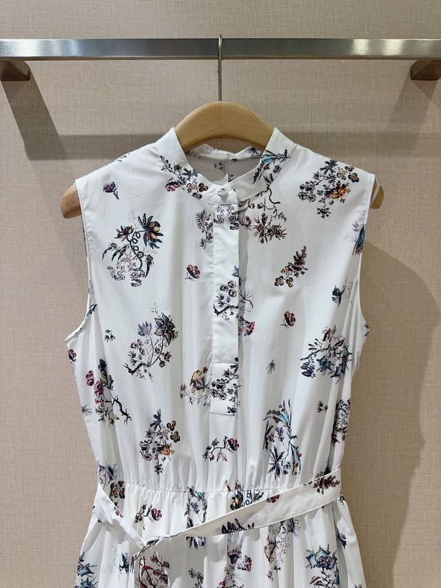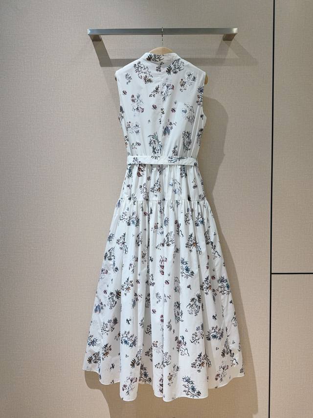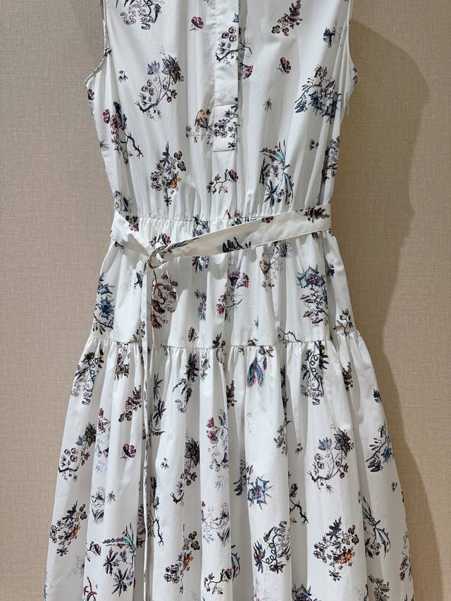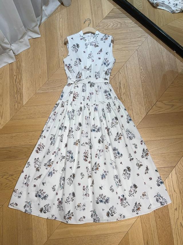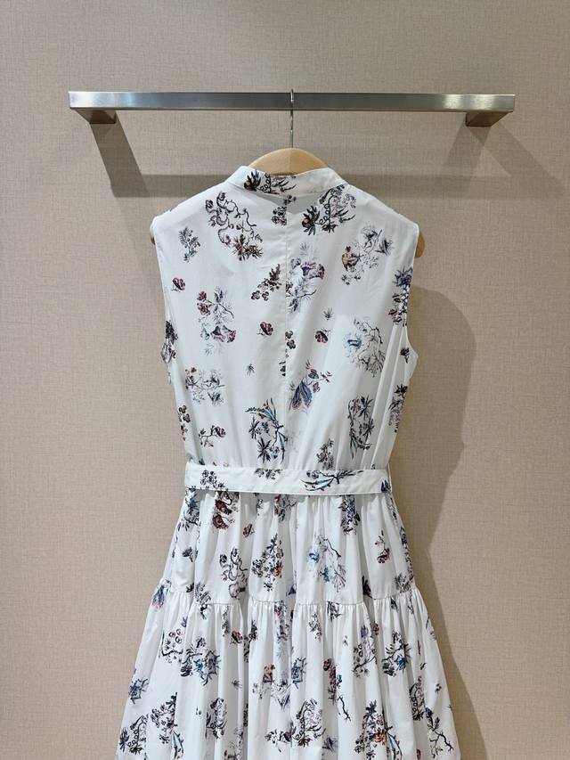 Latest Sleeveless Dress features a resort-style print design, combining elegance and vibrancy for a sophisticated look. Made of pure cotton, it's soft and delicate to the touch. The high-waisted design, collar with matching fabric buttons, and oversized A-line skirt create a flattering silhouette that's incredibly youthful. Sizes: S, M, XL,