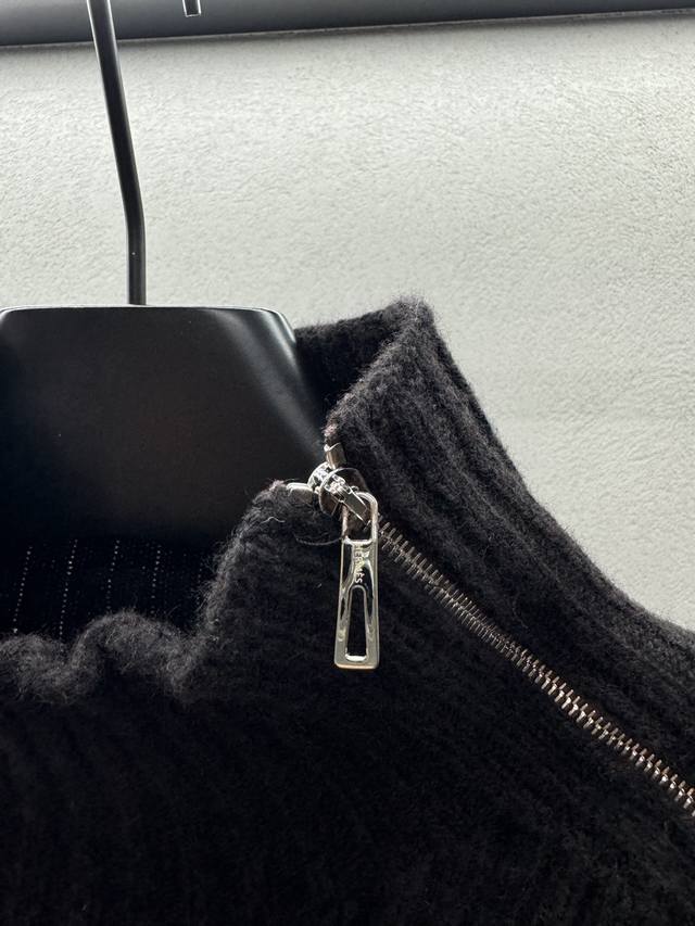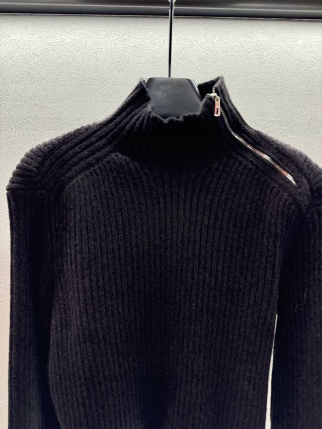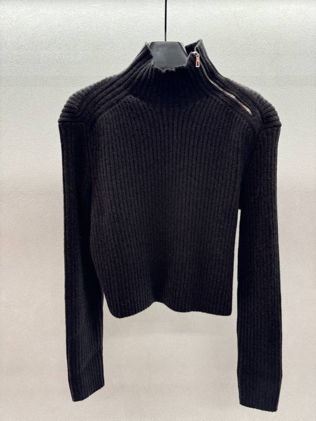 2025 Autumn And Winter ! H, half-high collar off-shoulder zipper sweater, fabric