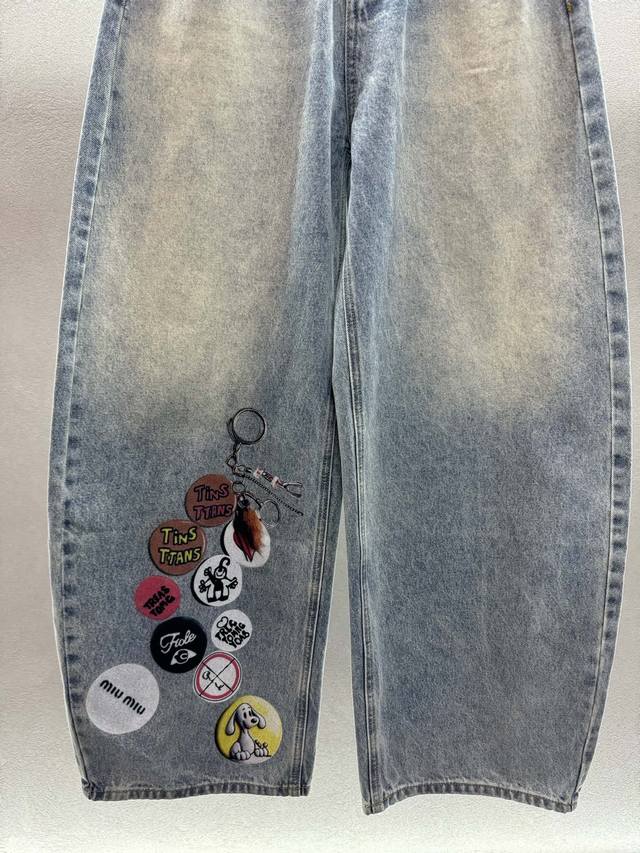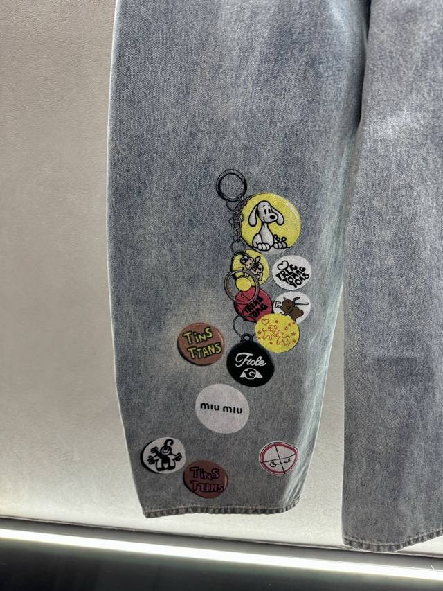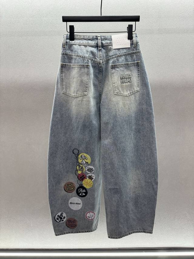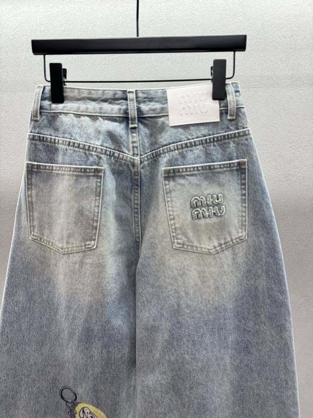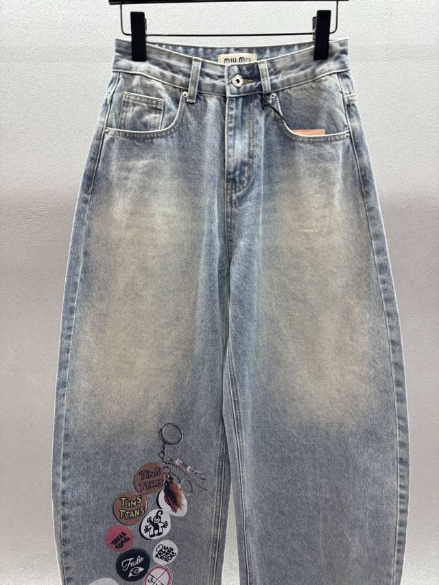 2025 Autumn And Winter ! Miu keychain scimitar pants, made of denim and cotton,