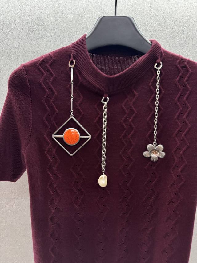 ! pra*Da, original 1:1 burgundy short-sleeved knitwear,