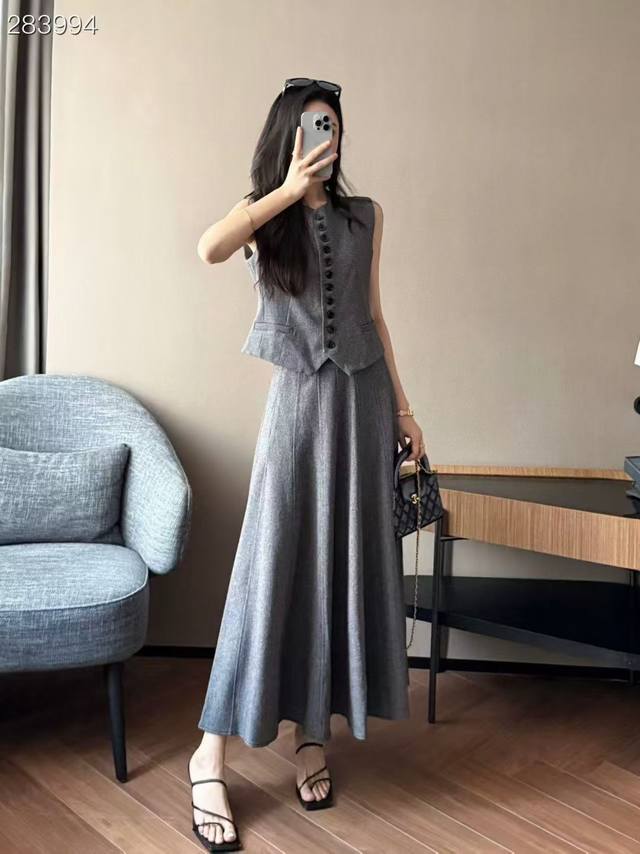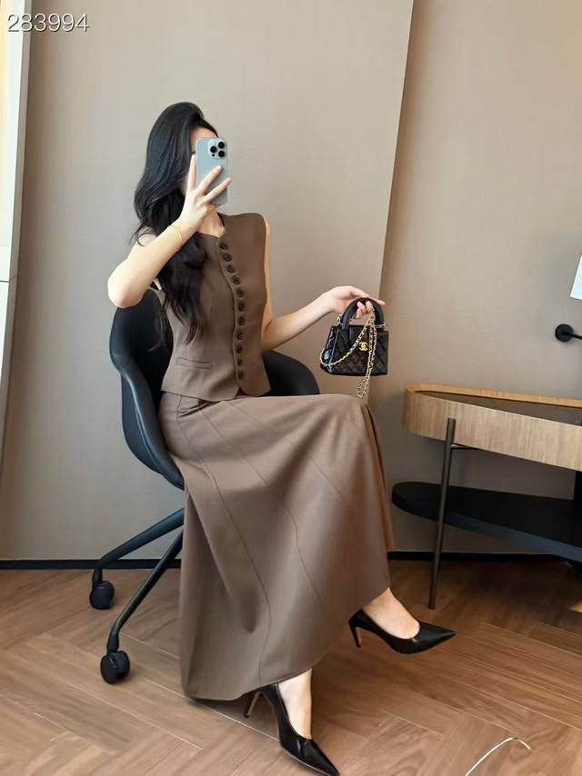 2025 autumn new high-end elegant fashion slim vest top skirt temperament commute