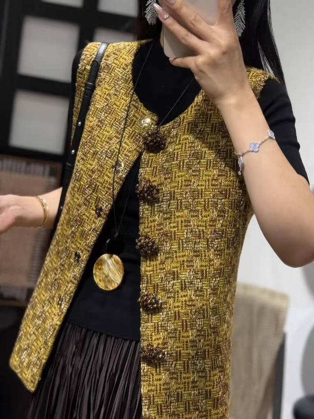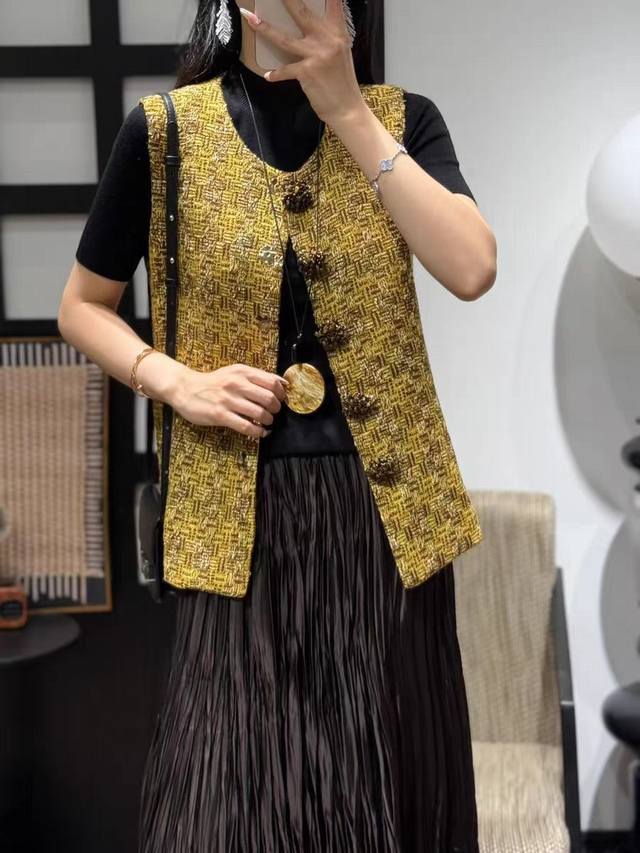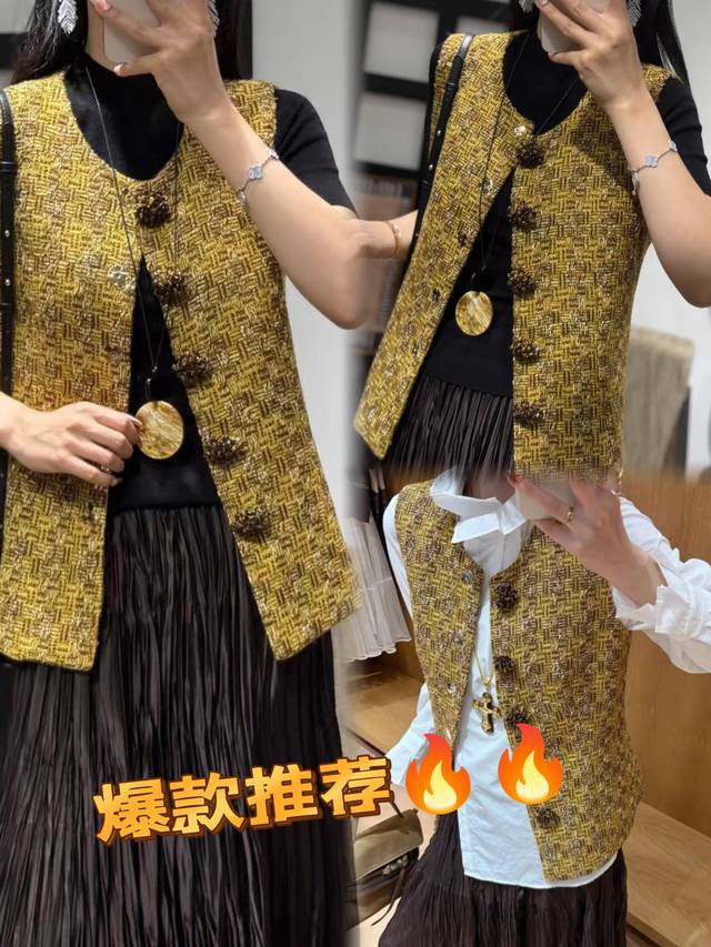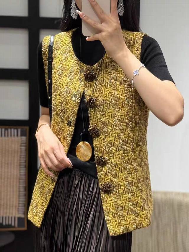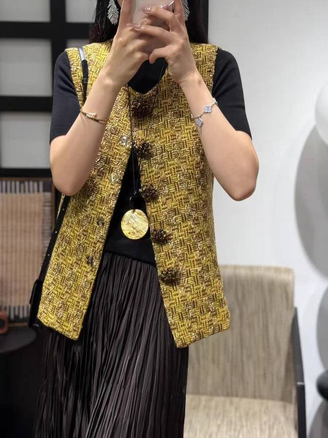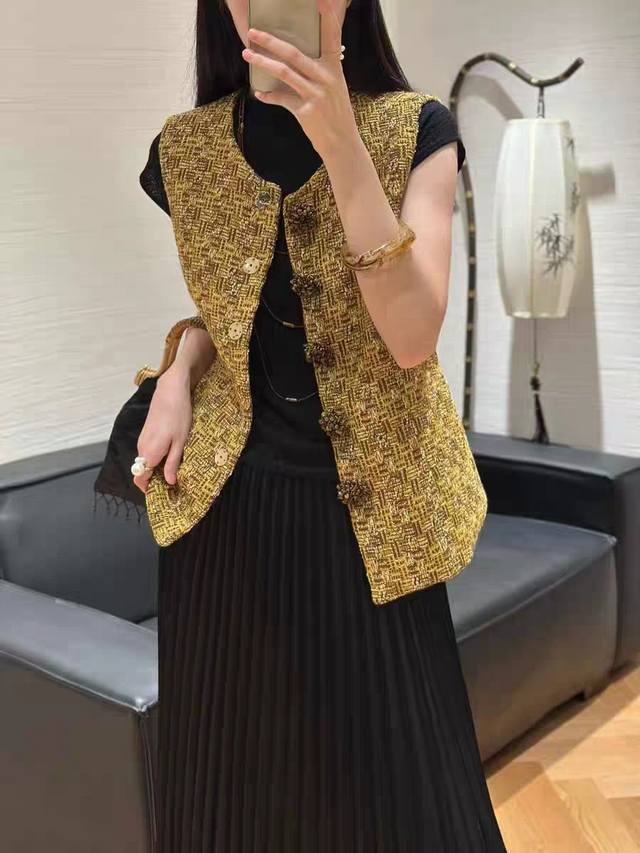 2025 autumn new hot style pure hand-sewn custom buckle high-end fashion foreign style versatile slim sleeveless small Chanel style vest vest four sizes S M L X L
