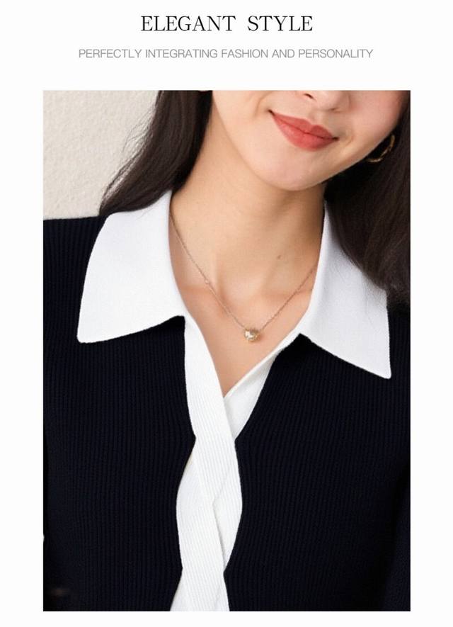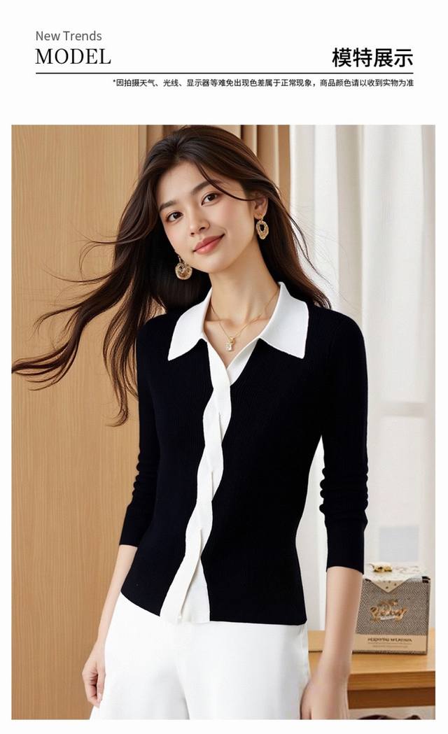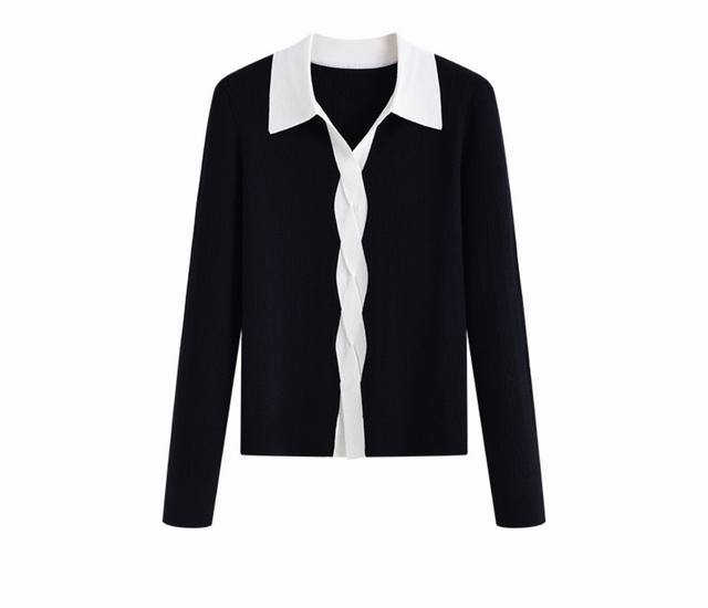 / 2025 autumn new style lapel long-sleeved knit sweater for women, black and white
