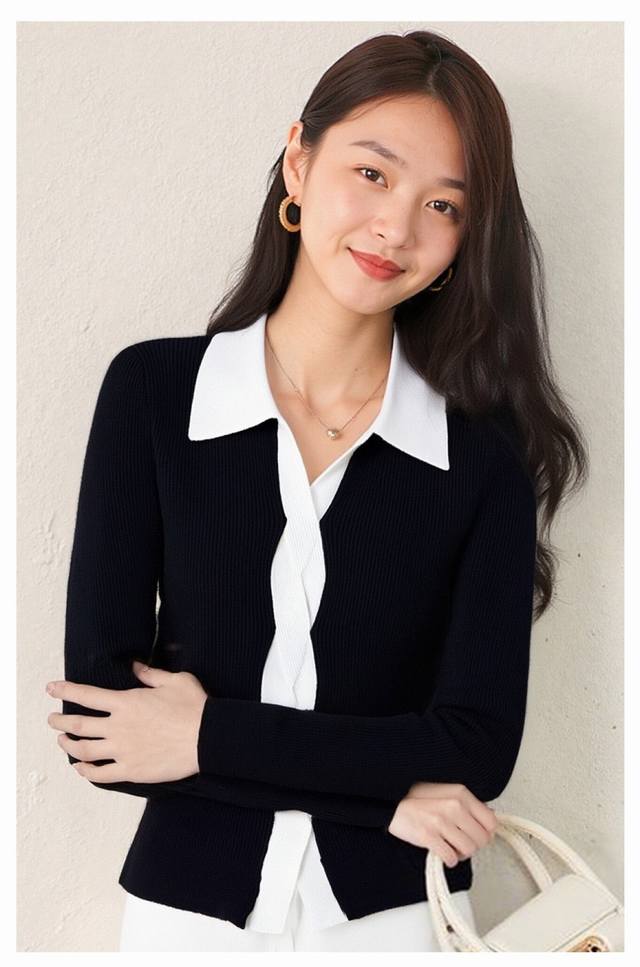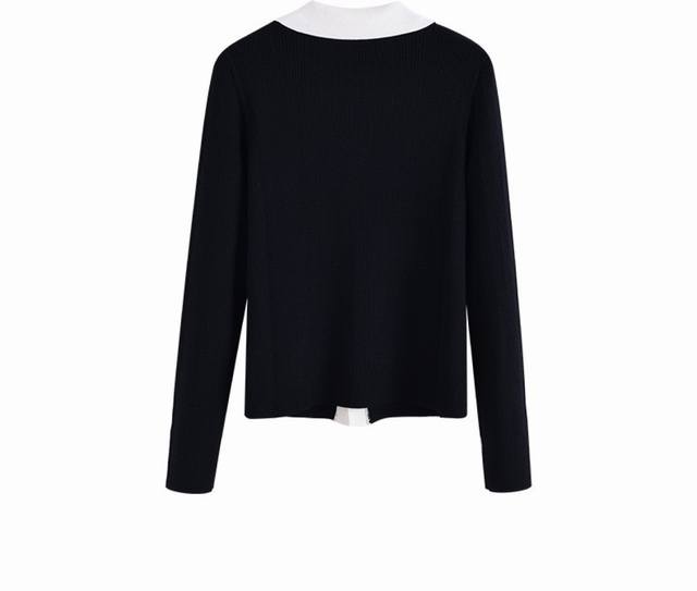 2025 autumn new style lapel long-sleeved knit sweater for women, black and white