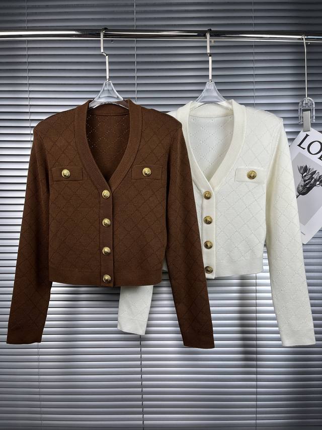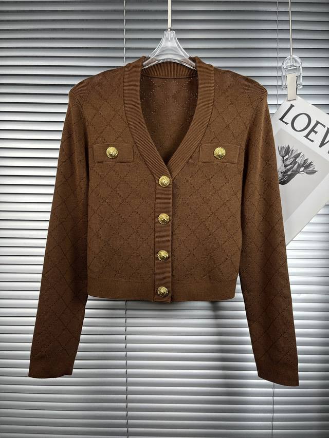 2025 Autumn/Winter New Arrival Burberry Gold Buckle Diamond Pattern V-Neck Wool Cardigan Coat (