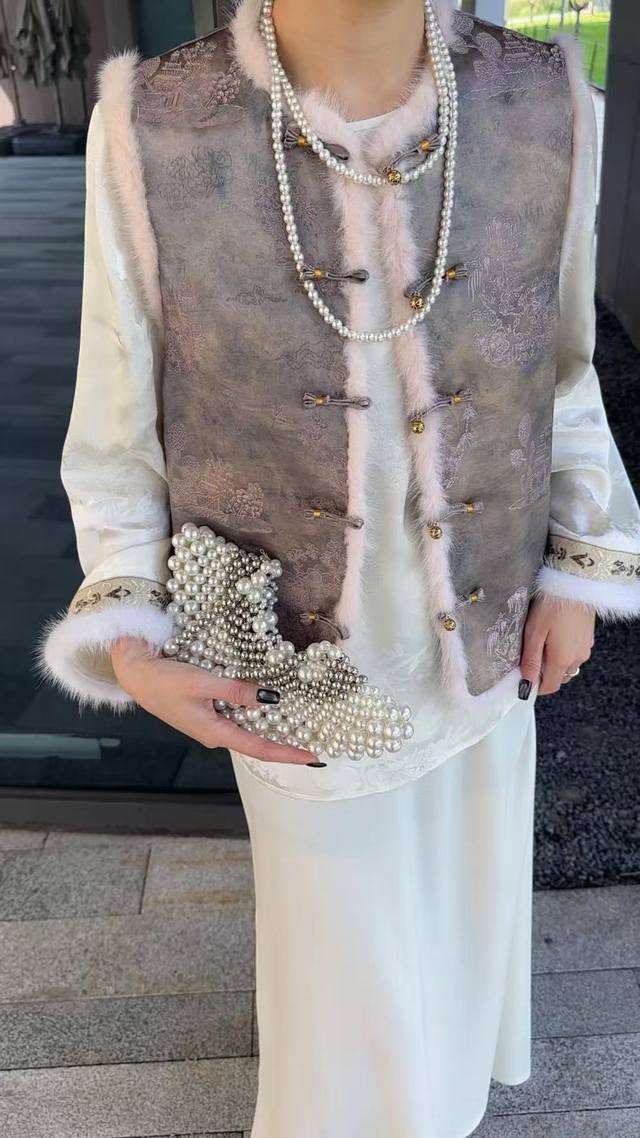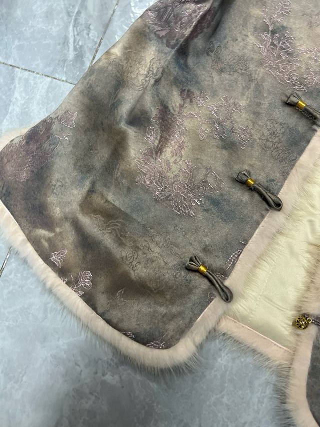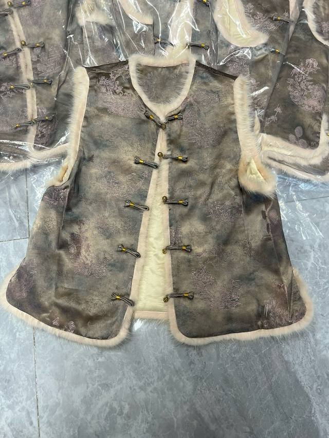 2025 Autumn/Winter New Arrival New Chinese Style Rayon Jacquard Mink Fur Quilted Vest DDD Size: Smlxl DDD