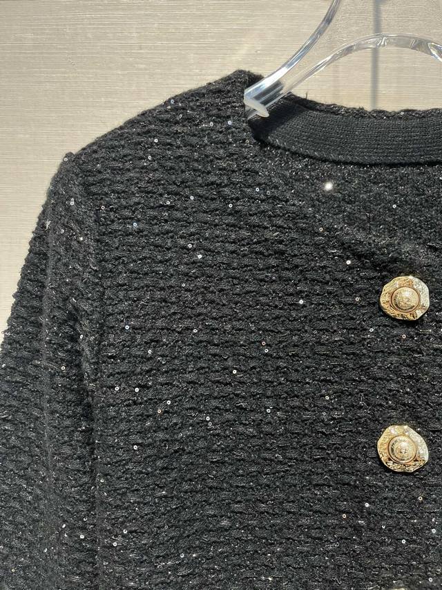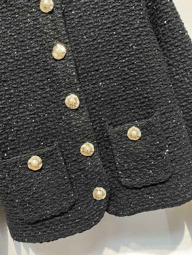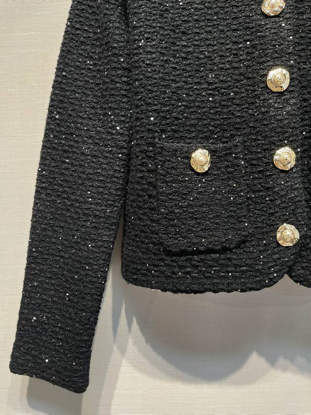 Ch*25 New fall/winter sequined round-neck jacket with an exquisite double-pocket