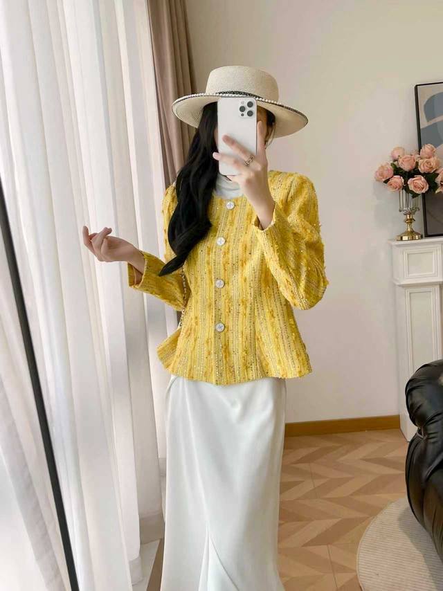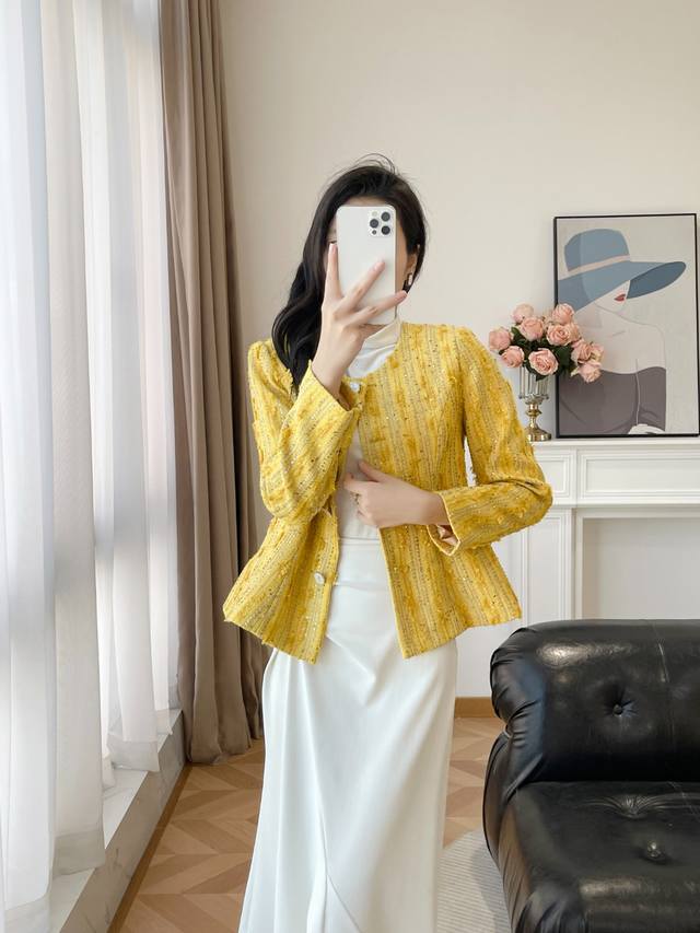 2025 Autumn/Winter New Chanel-Style Women's Cardigan, High-End Elegant Retro Round Neck Single-Breasted Coat, Tweed, S- XL, In Stock DDD