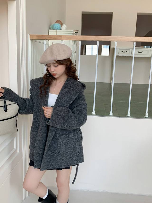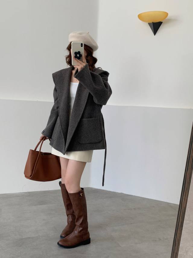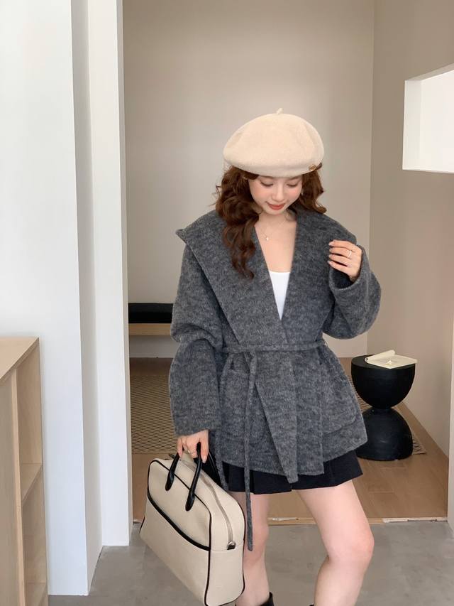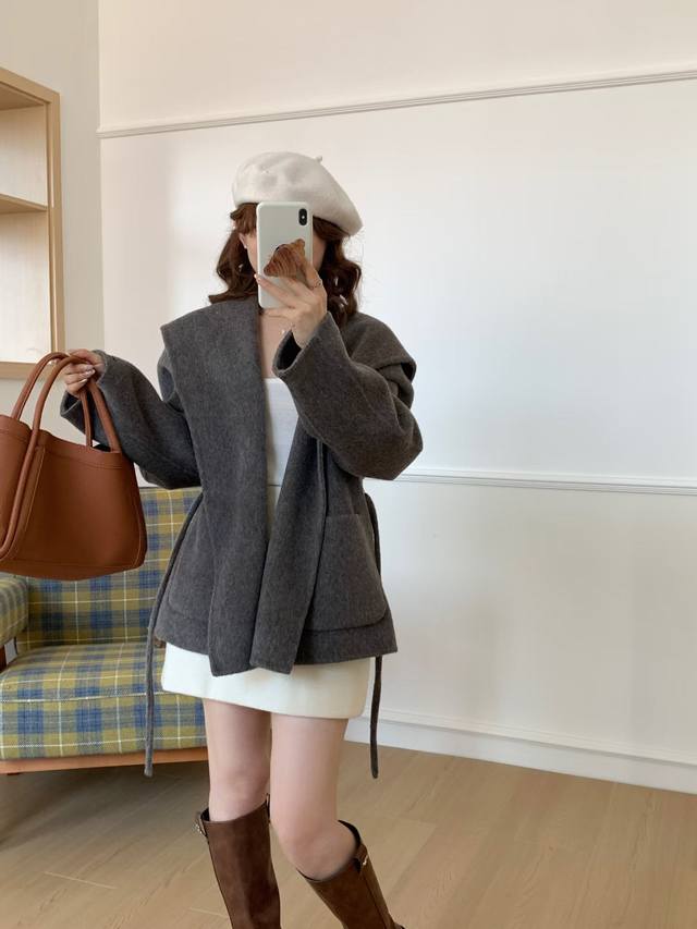 2025 Autumn/Winter New Korean Style Loose Fit Slimming Lapel Wool Coat Women's Short Petite Belt Coat DDD