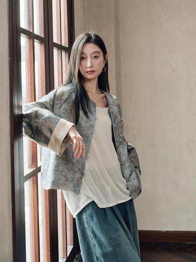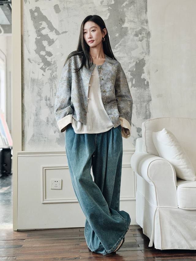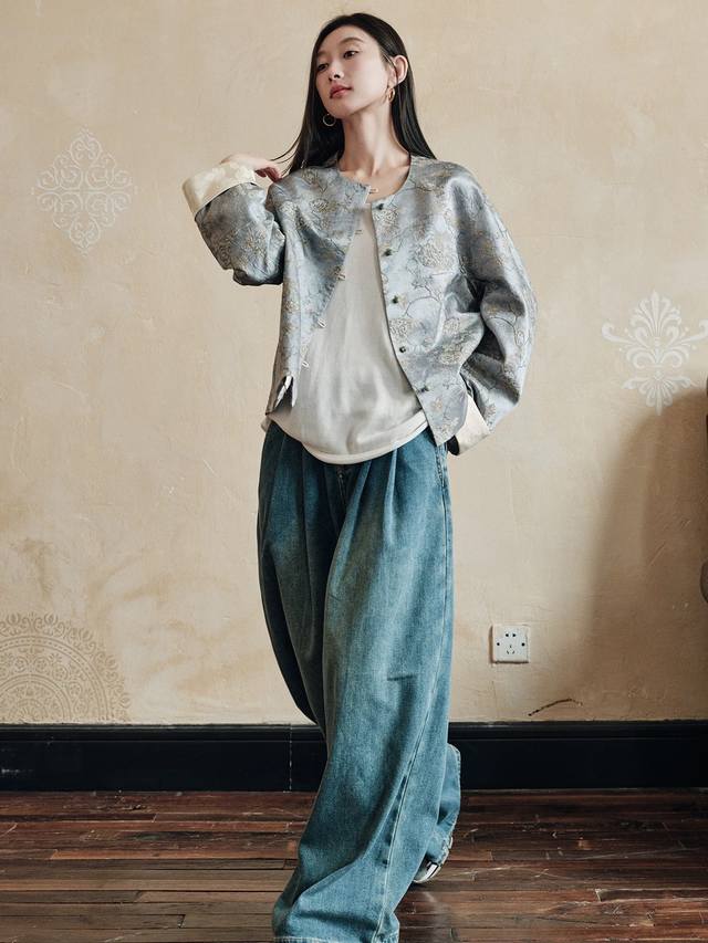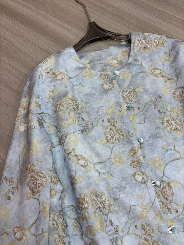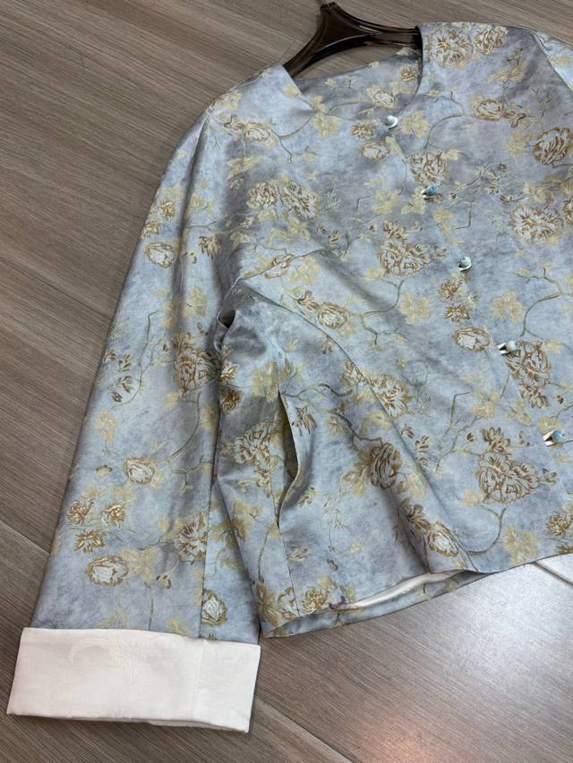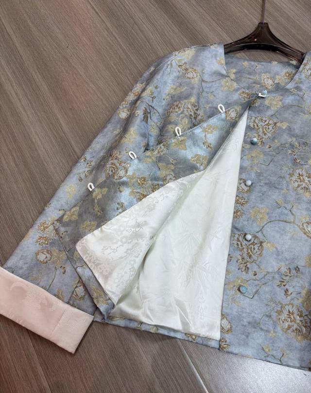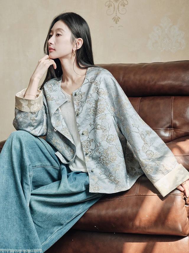 New Chinese style silk wool jacquard printing and dyeing contrast color jacquard cuffs three-dimensional silhouette loose fashionable versatile jacket