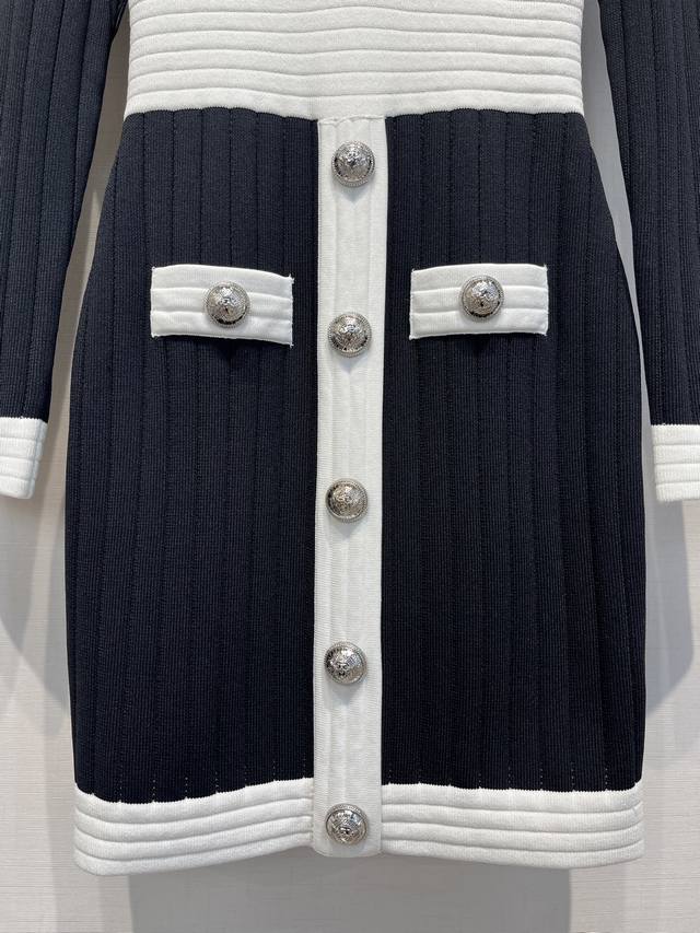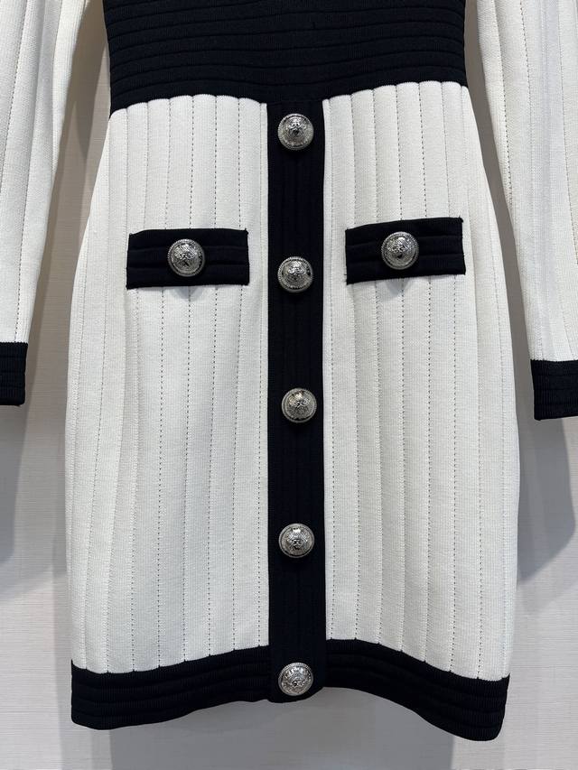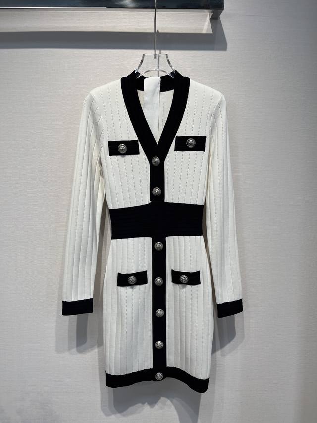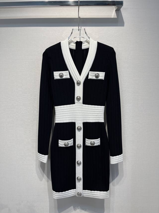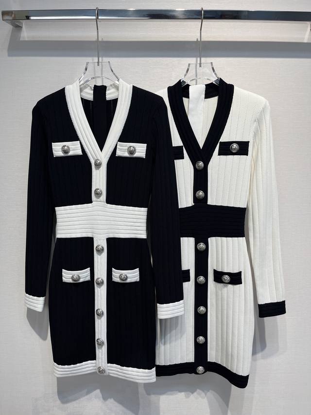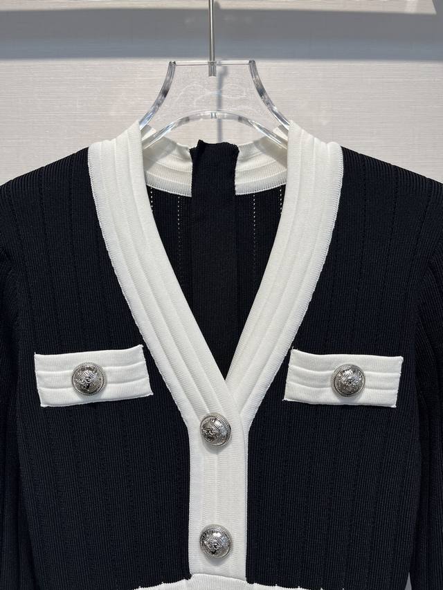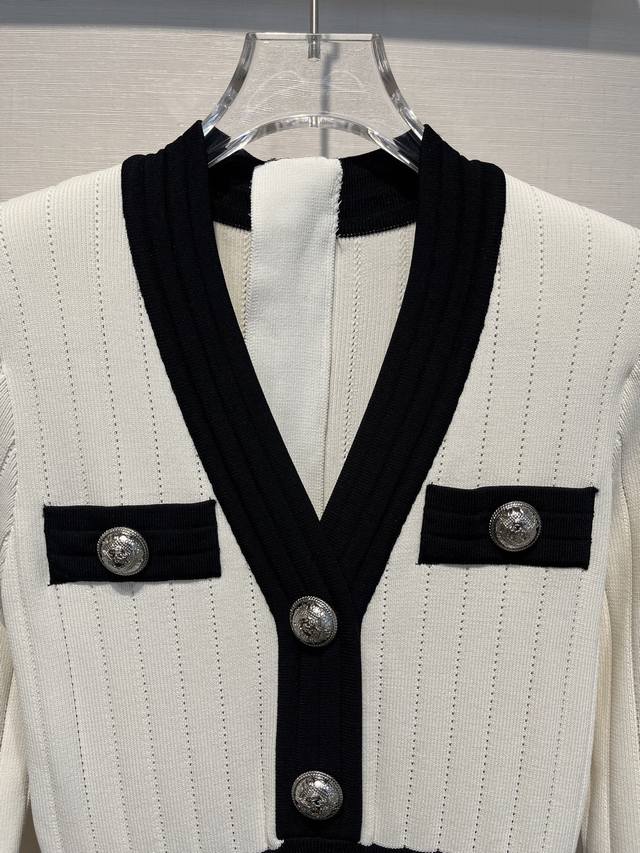 2025 New B V-neck silver button jacquard skirt Size: S- L