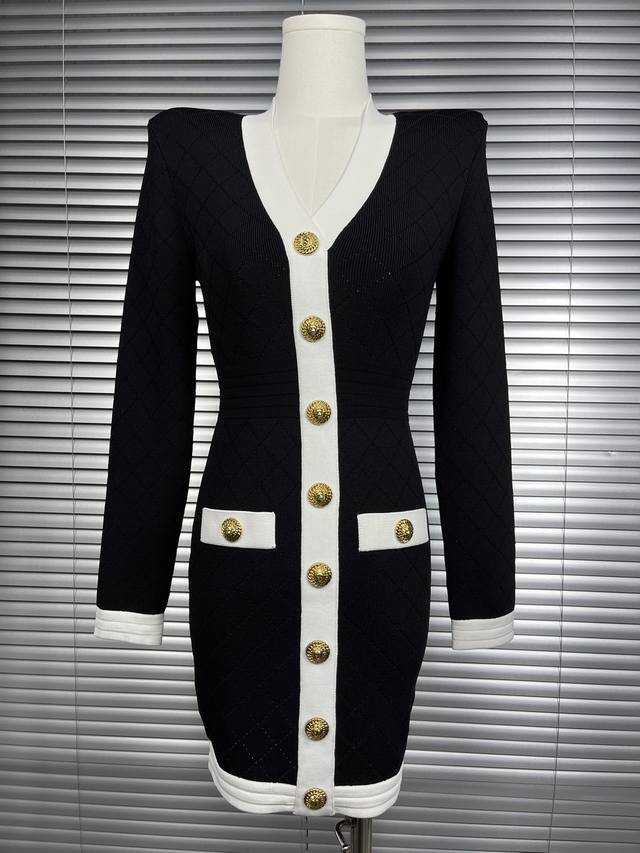 2025 New B-style V-neck diamond jacquard skirt fashionable and slim Size: S- L