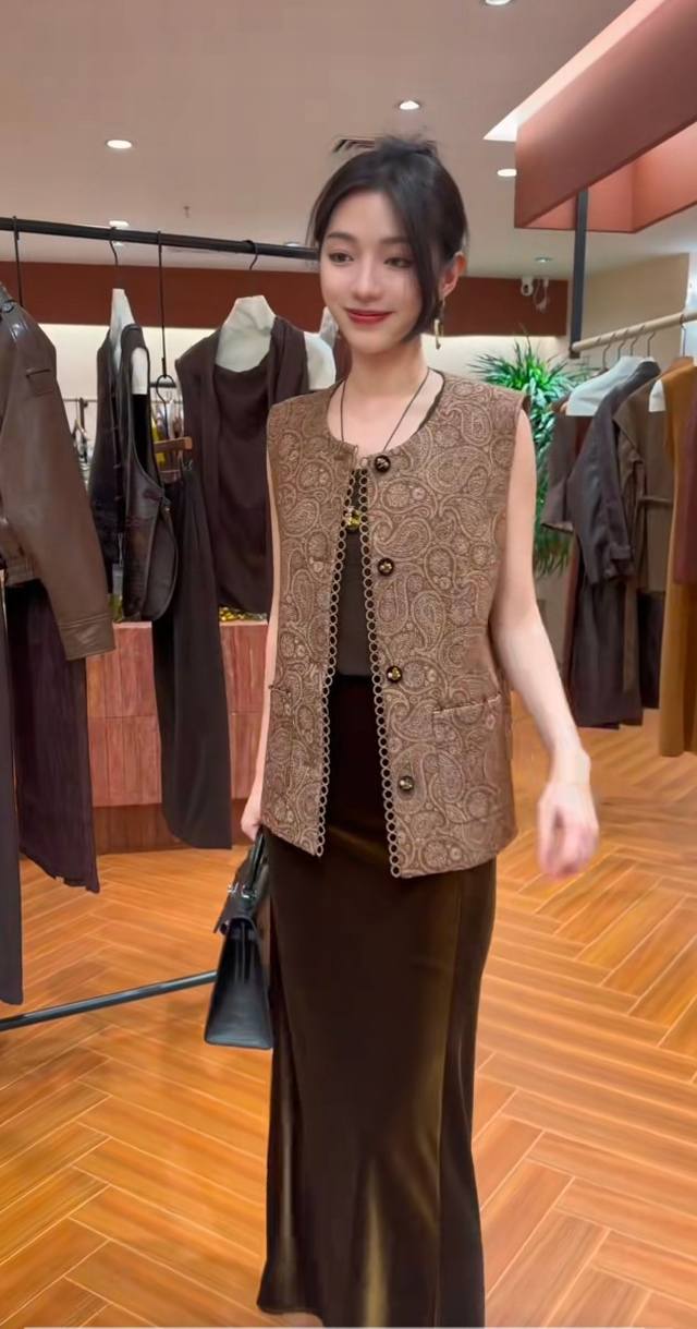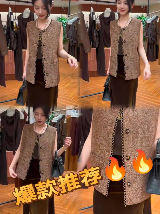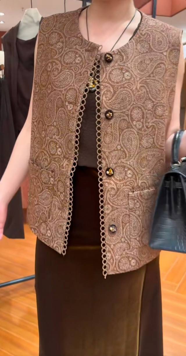 2025 new hot-selling old money style cashew flower pure handmade bead buckle design full sense of vest women's early autumn heavy paisley pattern vest four sizes SML Xl