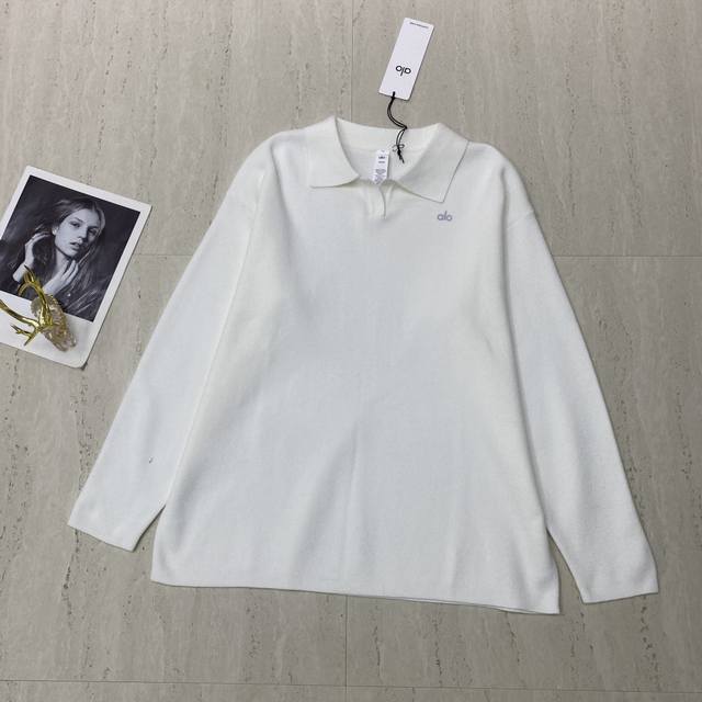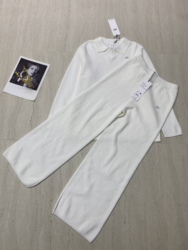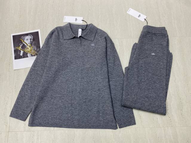 Actual Photos Alo's new lapel simple letter print sweater set; Made of soft and delicate cotton fabric; Custom washed wheat accessories. Loose fit, comfortable and good-looking!