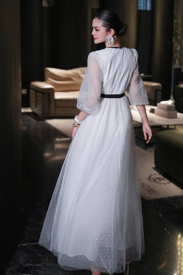 2025 new style, European and American fashion show fashion V-neck mesh heavy bea