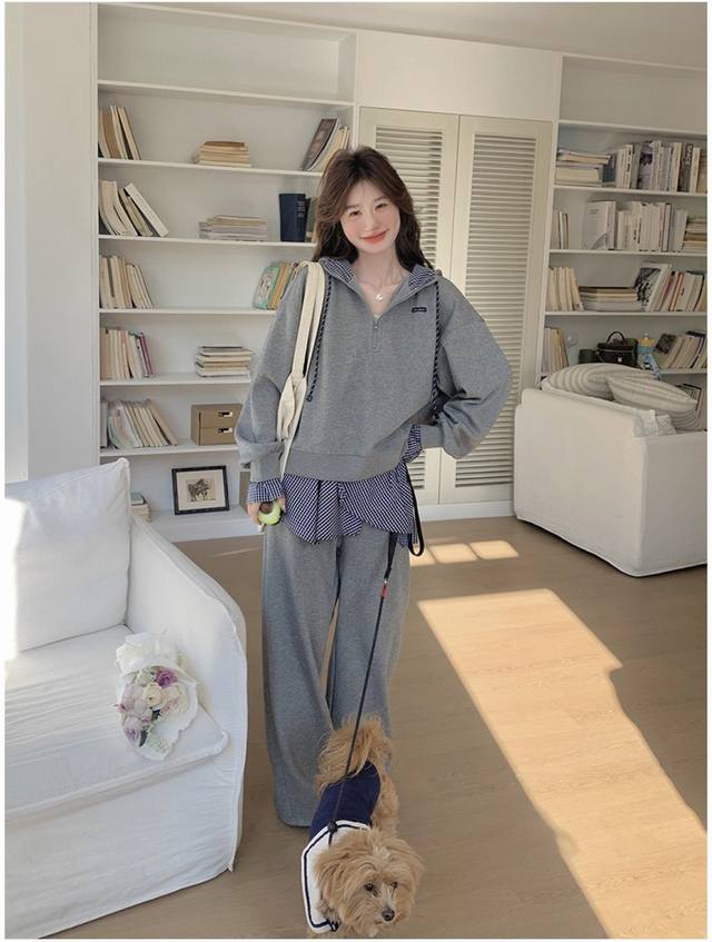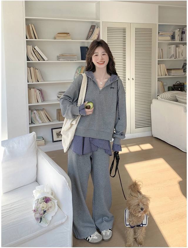 2025 Spring and Autumn Internet celebrity long-sleeved pants suit cotton letter