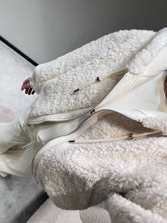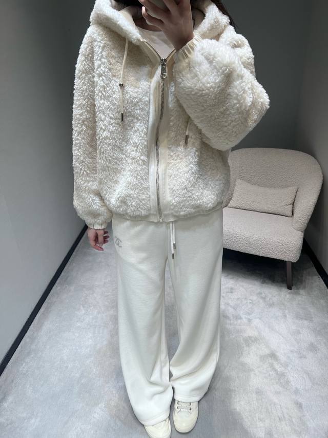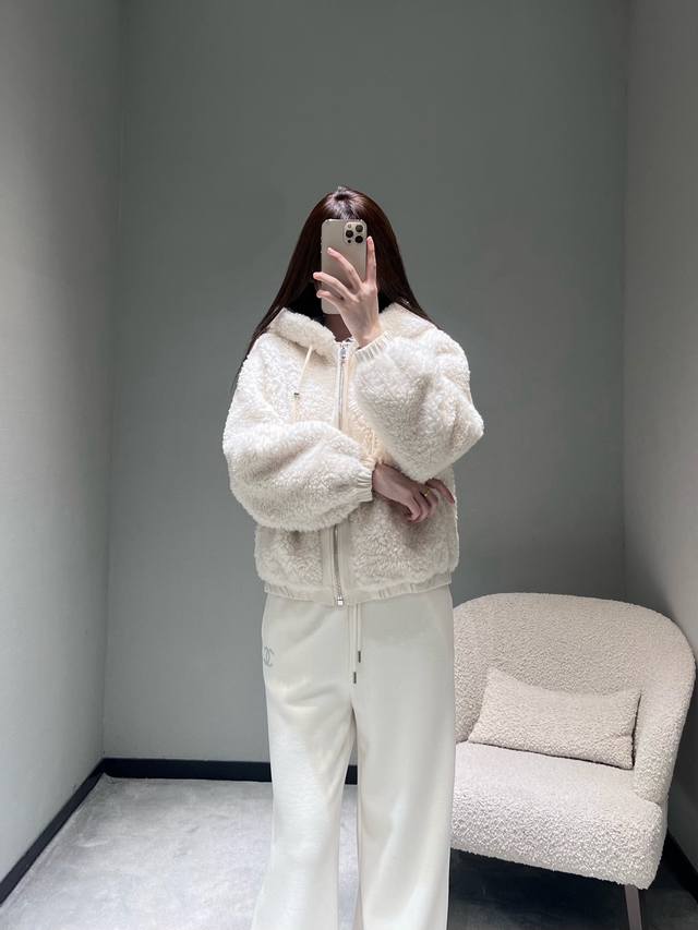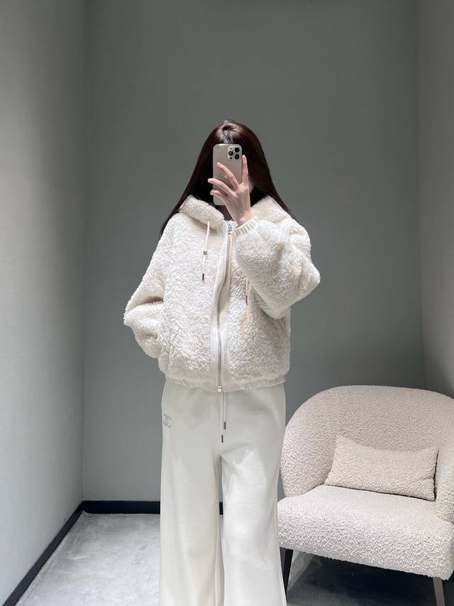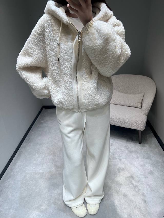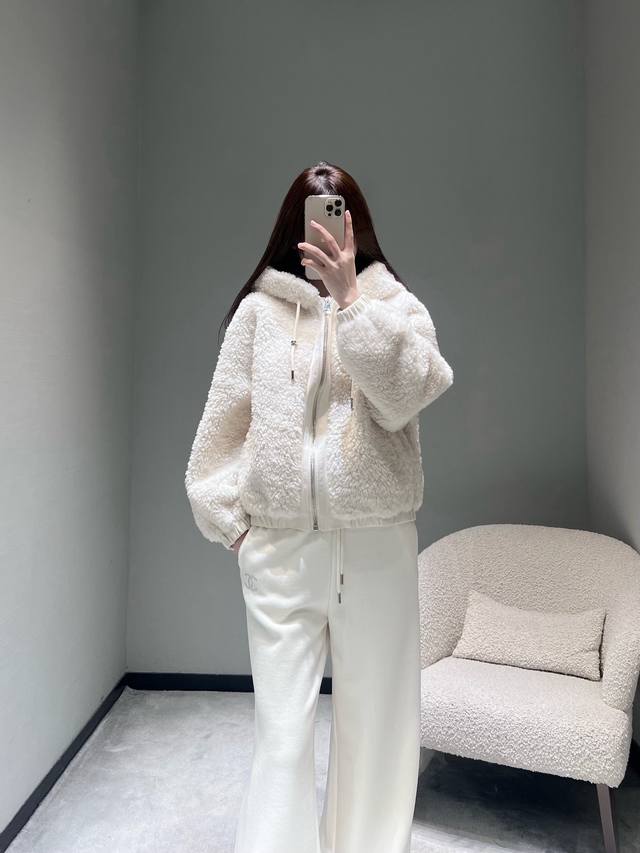 2025Fw Autumn/Winter New Arrival Collection Plush Hooded Jacket: A loose-fitting, drop-shoulder short hooded style that won't overwhelm your height and can conceal thick inner layers. The fluffy plush fabric feels like being wrapped in a soft cloud, exuding a "light, warm, and lazy" vibe. The simple design paired with clean light colors reveals a subtle yet luxurious feel. Sml DDD