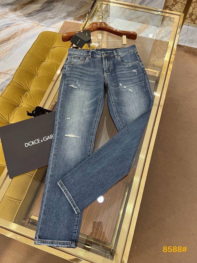 2025Ssdg latest jeans with perfect small holes, washed, exclusive Dg iron brand, high-end zipper hardware, custom elasticity, slim fit, skinny pants, size: 29-38