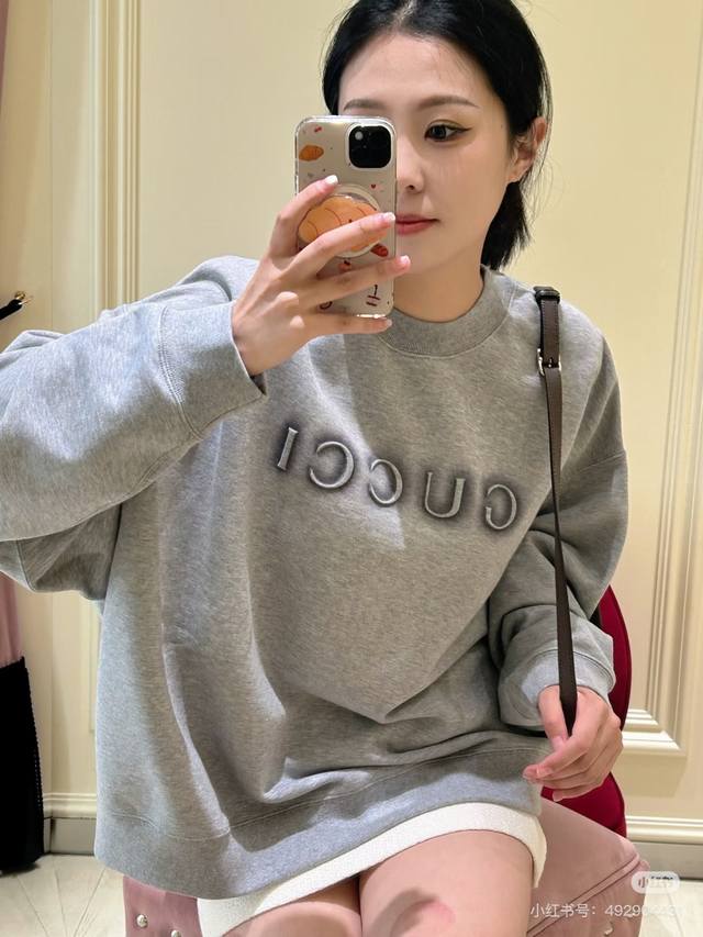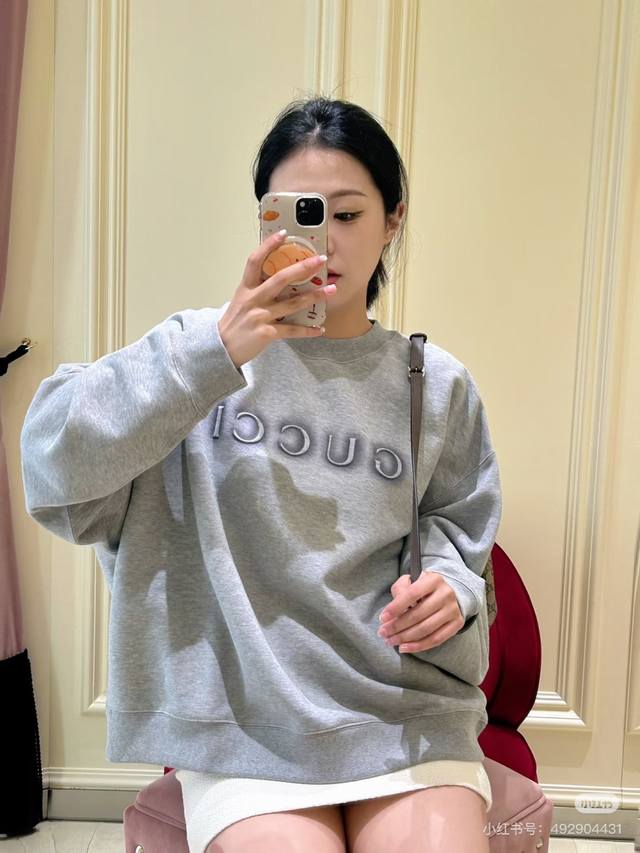 / 25 Autumn and winter new round neck gray letter long sleeve sweatshirt casual al