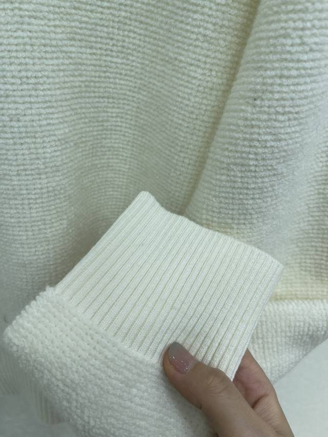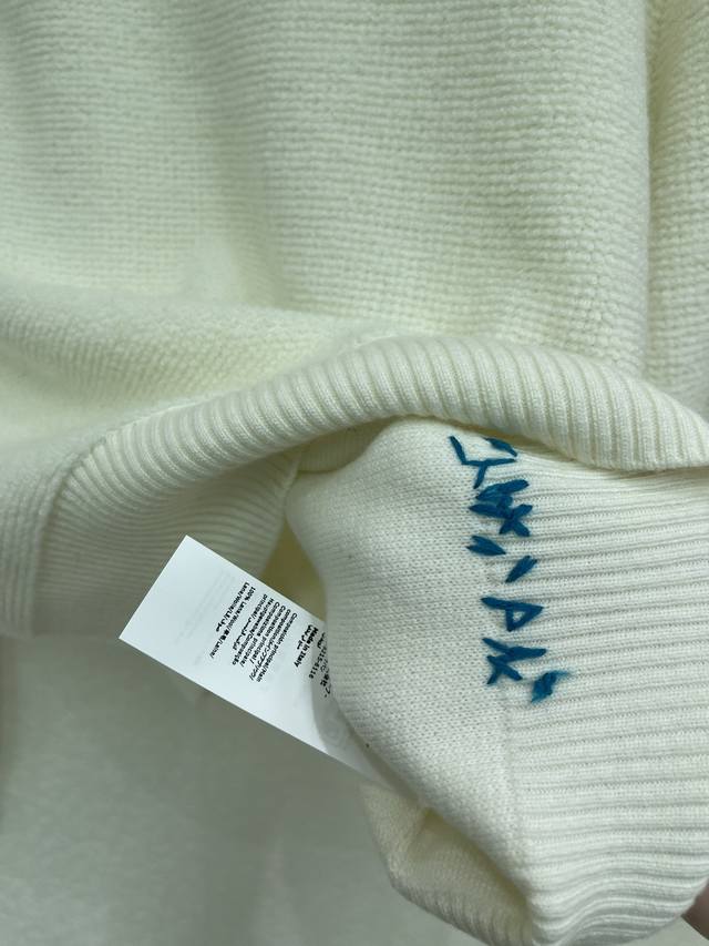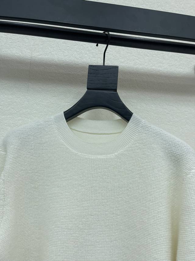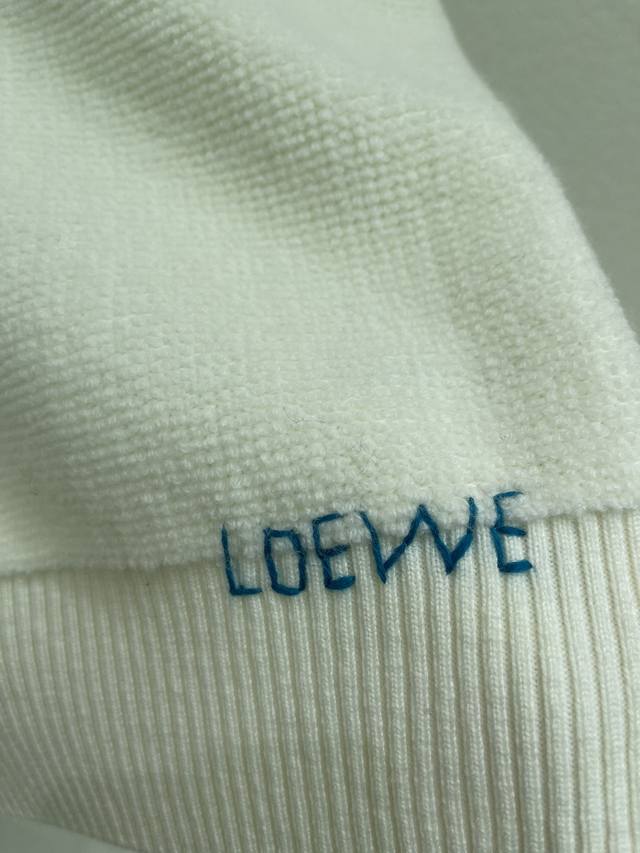 25 Autumn/Winter New Color-Blocked Embroidered Round Neck Wool Knit Sweater. This medium-weight knit sweater features Loew* hand-stitched color-blocked embroidery at the hem, ribbed collar, cuffs, and hem, and a slim fit. Sml Aa DDD